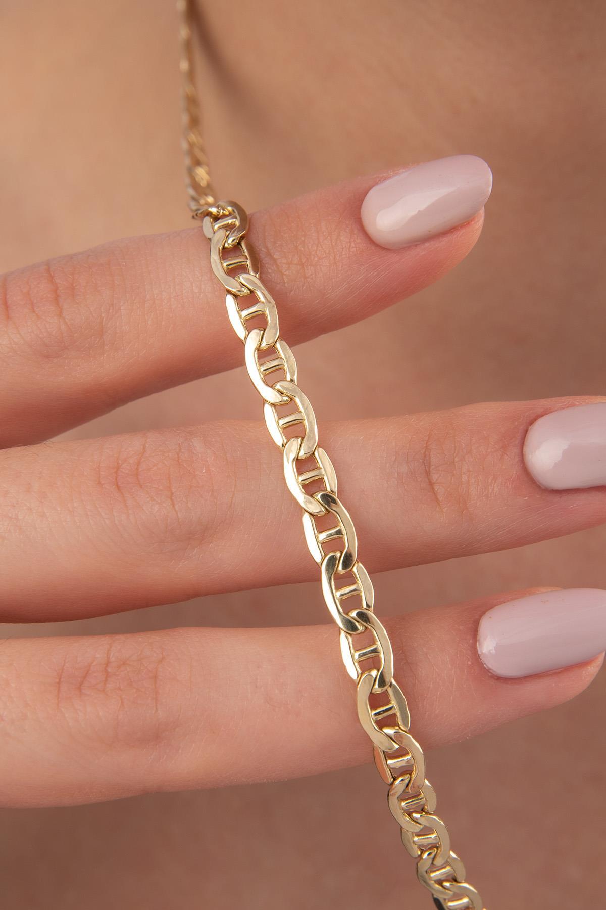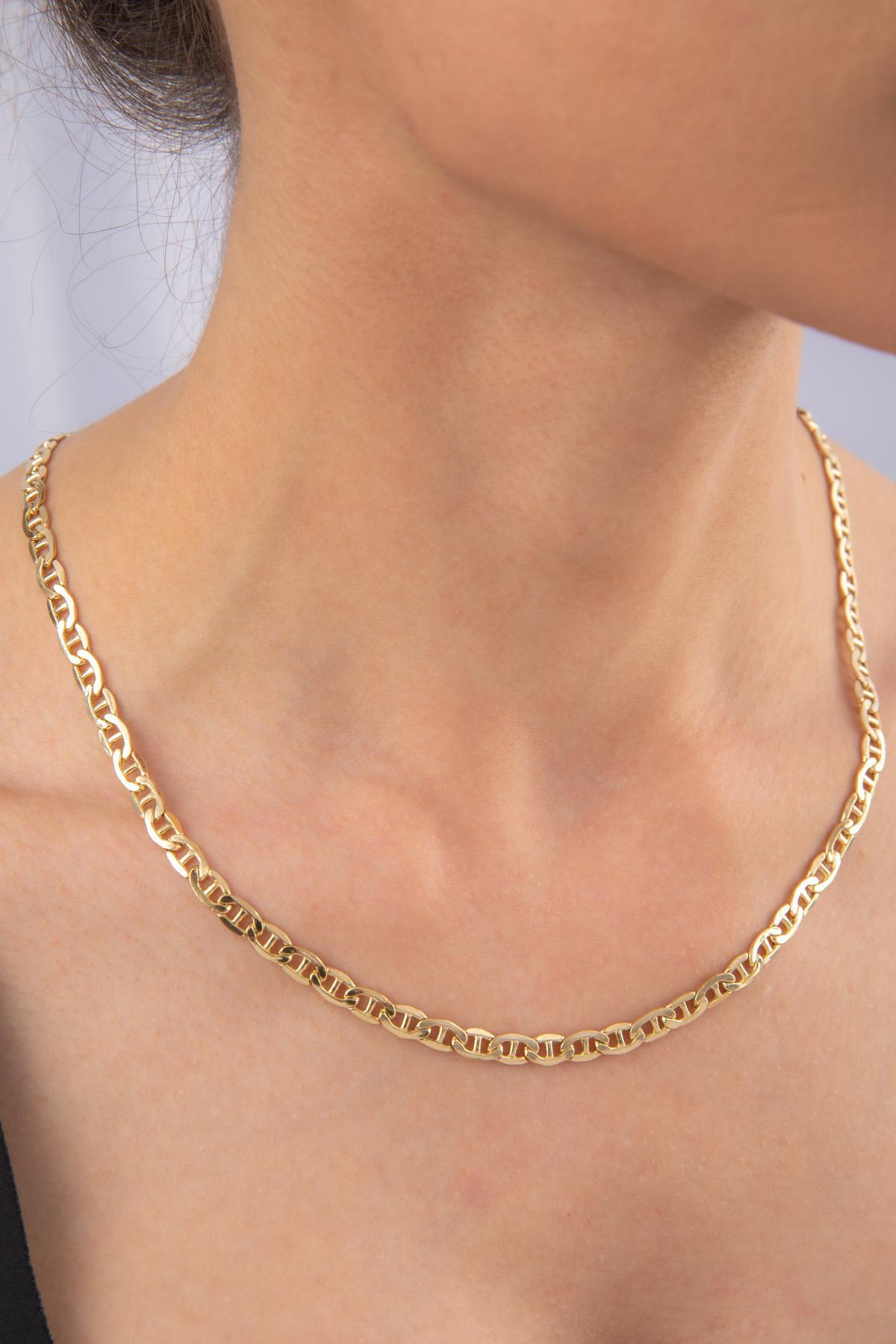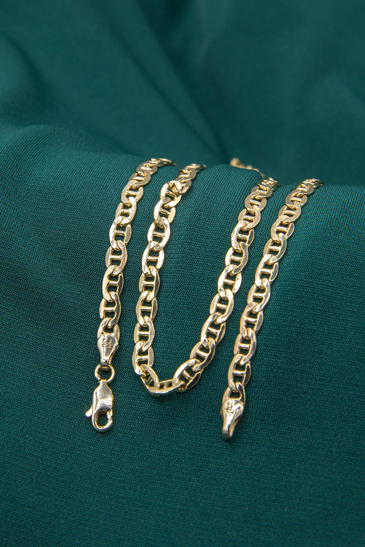 14 ayar altından İkra Kuyumculuk kalitesi ve işçiliği ile üretilen Barlı Valentino Zincir Kolye, özel bir halka ve çubuk (bar) kombinasyonuyla tasarlanmış, tok ve gösterişli bir Valentino (yassı halkalı) zincir modelidir. Zincirin belirgin genişliği 5 mm‘dir. Ürün, farklı uzunluk seçenekleriyle günlük kullanıma uygundur.