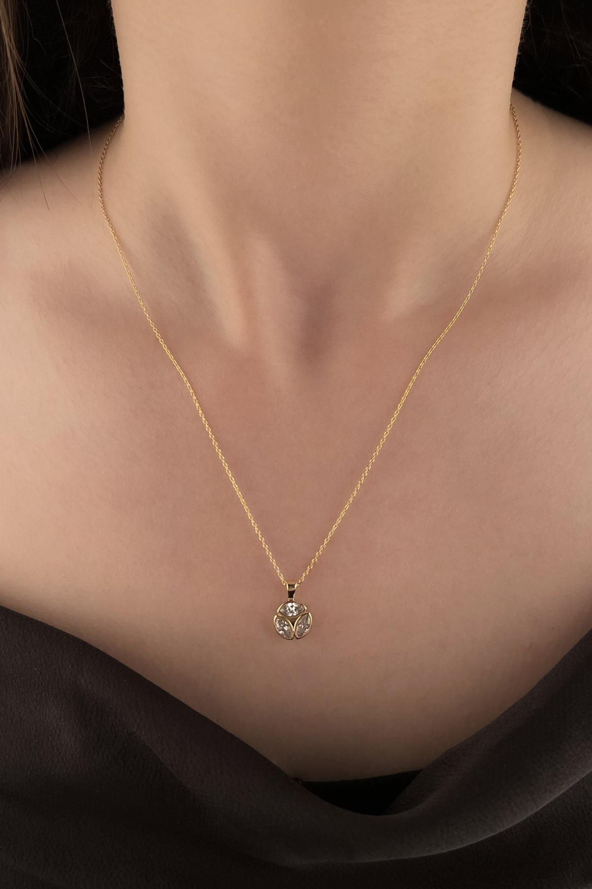 Kolye: 45 cm uzunluğunda ve 2,85 gram ağırlığında, boyunda hafif ve şık bir duruş sağlar.
