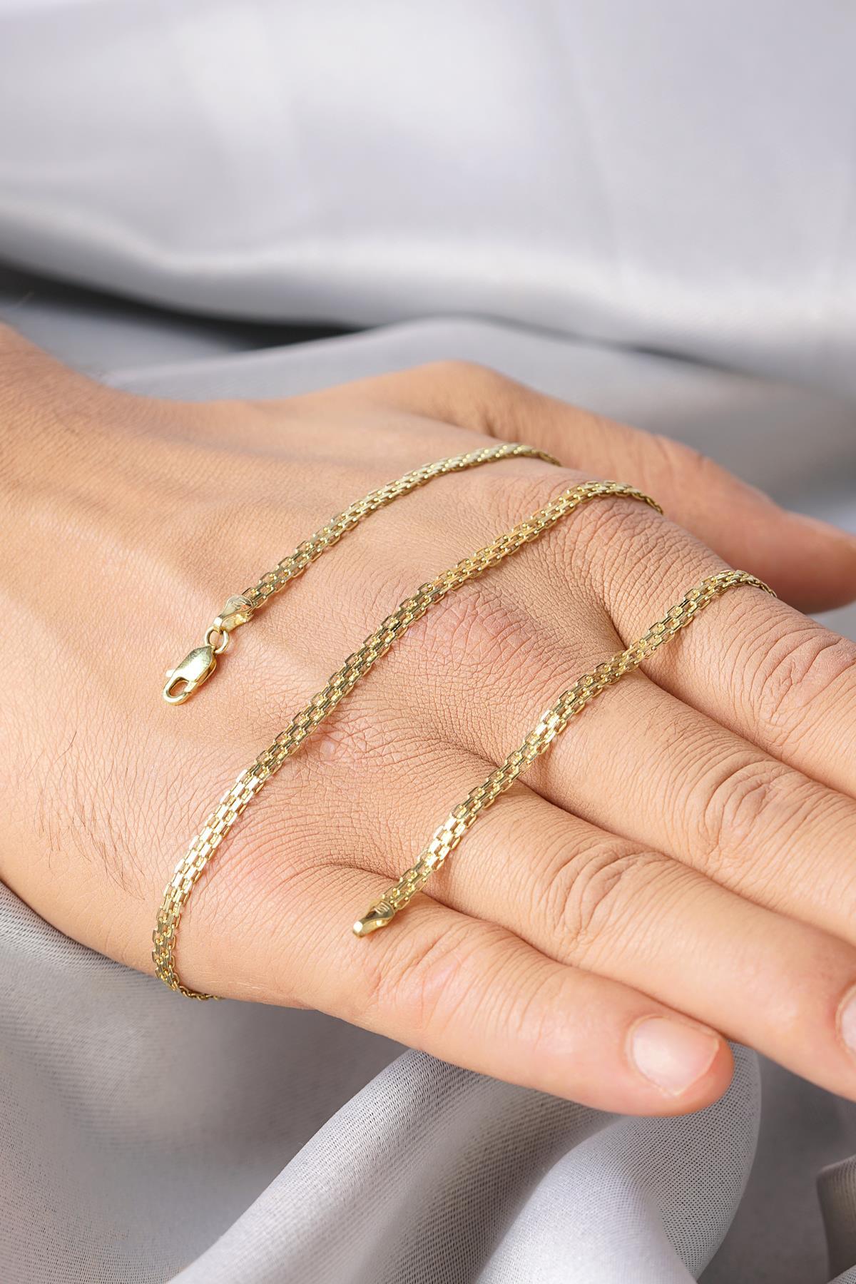14 Ayar altın, 45–70 cm uzunluğunda ve 7,00–10,78 gr ağırlığında altın kolye. Günlük kullanıma uygundur. 7,00 için Fiyat verilmiştir diğer gramlar için iletişime geçin.