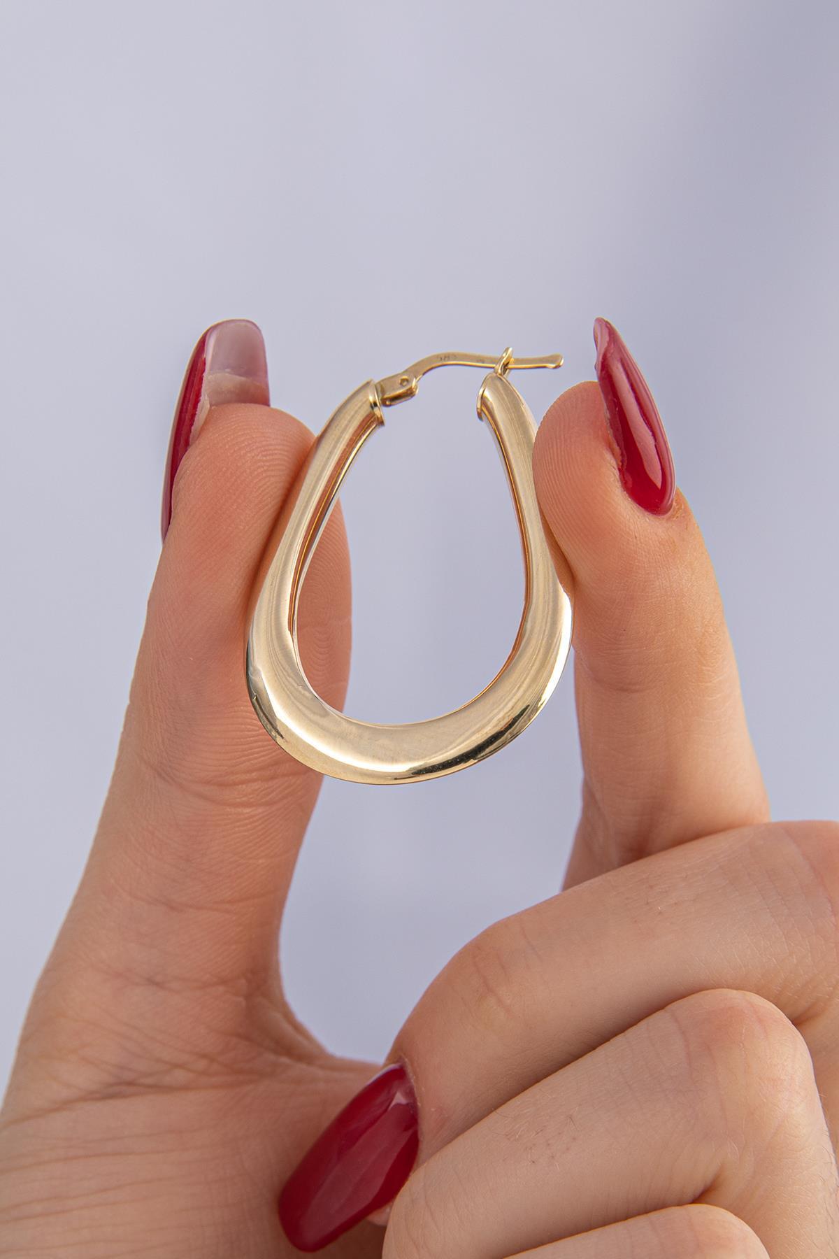 14 ayar altından İkra Kuyumculuk kalitesi ve işçiliği ile üretilen Bombeli Oval Küpe, dolgun ve parlak bombeli (şişkin) bir yüzeye sahip oval formda tasarlanmıştır. Bu modern ve şık küpe, büyük ve gösterişli yapısıyla dikkat çekicidir. Küpenin genişliği 2,66 cm ve yüksekliği 4,00 cm‘dir. Ürünün yaklaşık çift ağırlığı 4,23 gramdır. Tüm küpe modellerimiz çift olarak gönderilmektedir ve günlük kullanıma uygundur.