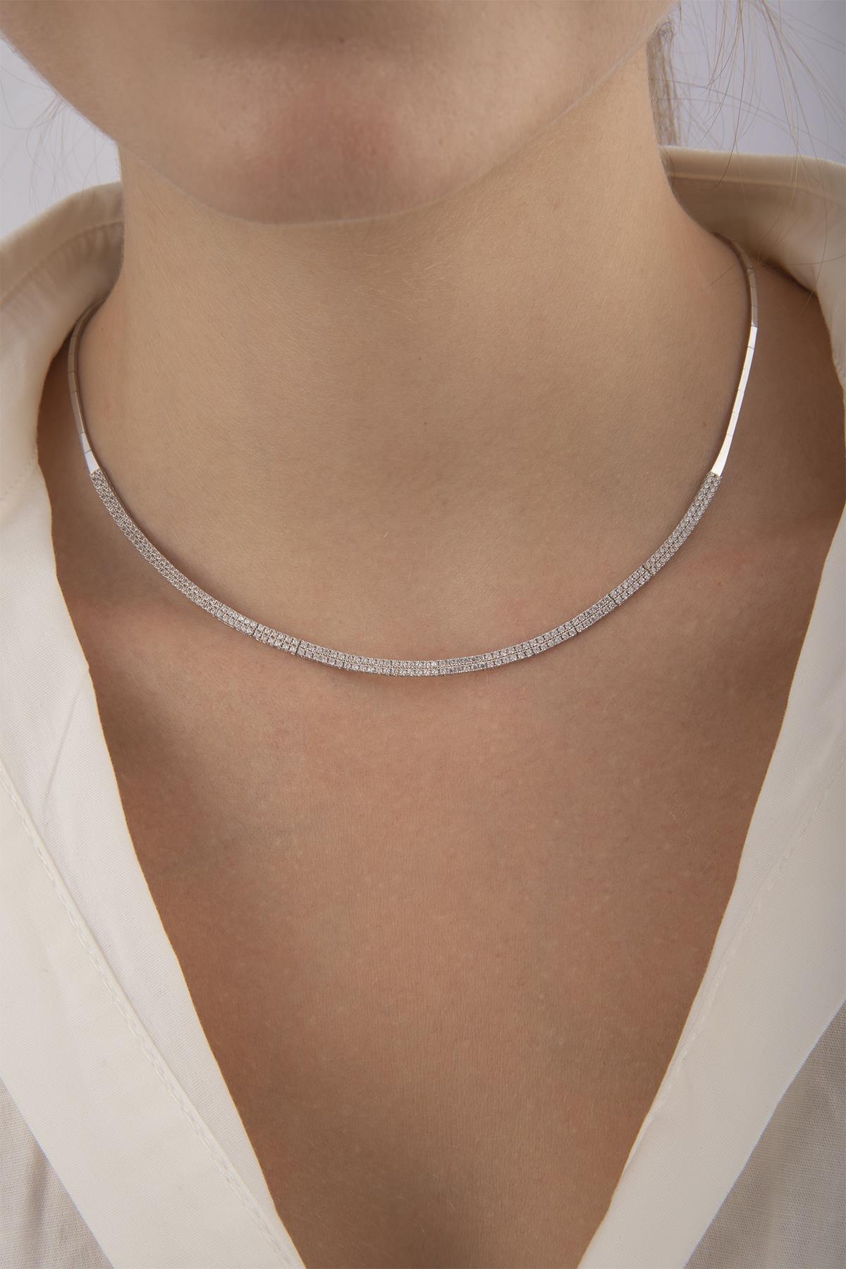 Kolye, 42 cm uzunluğu ve 7,47 gram ağırlığı ile boyunda zarif bir duruş sağlar.