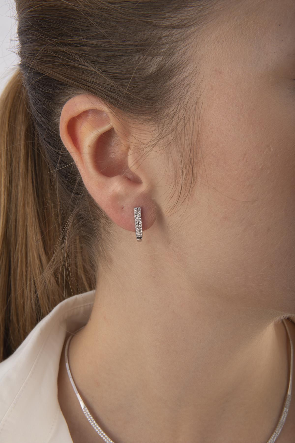 Küpe, 2,15 gram ağırlığında ve setin tamamlayıcı unsuru olarak sade bir şıklık sağlar.
