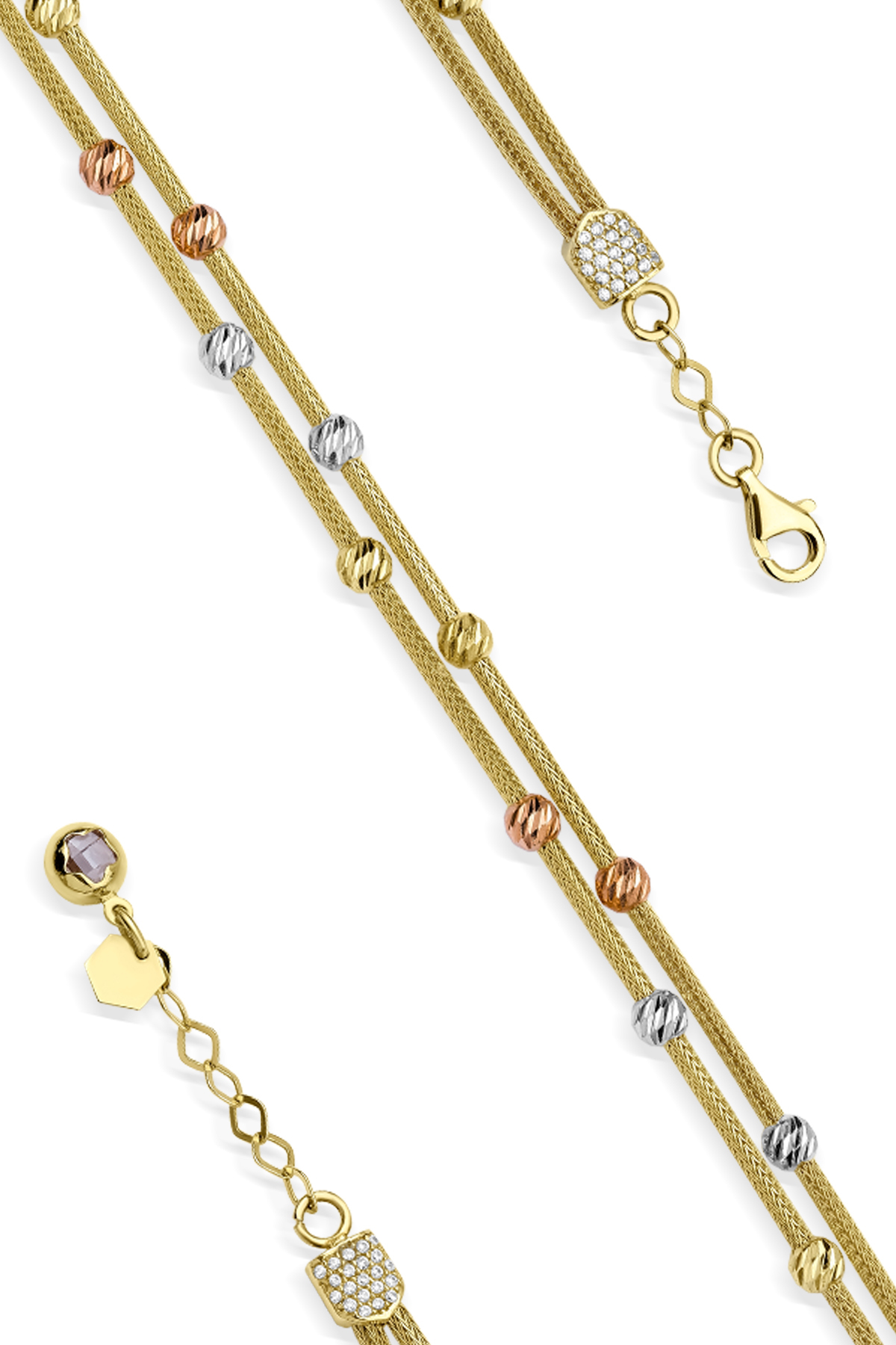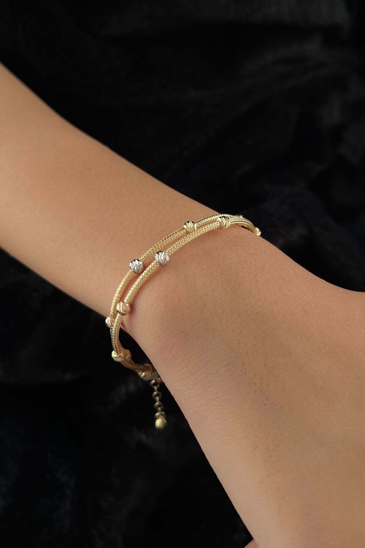 14 ayar altından üretilen Çift Sıra Tilki Kuyruğu Bileklik, yaklaşık 6,63 gram ağırlığa ve 18 cm + 3 cm uzunluğa sahiptir. 1 yıl garantilidir.
