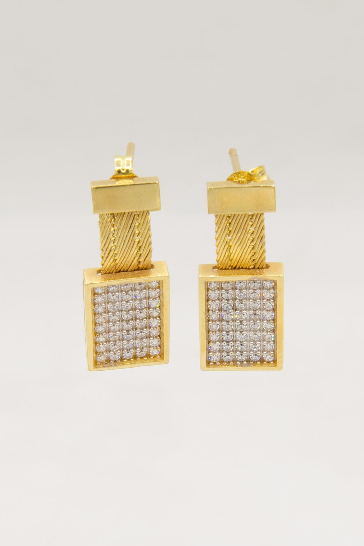 14 Ayar Altın Dikdörtgen Taş Detaylı Hasır Küpe