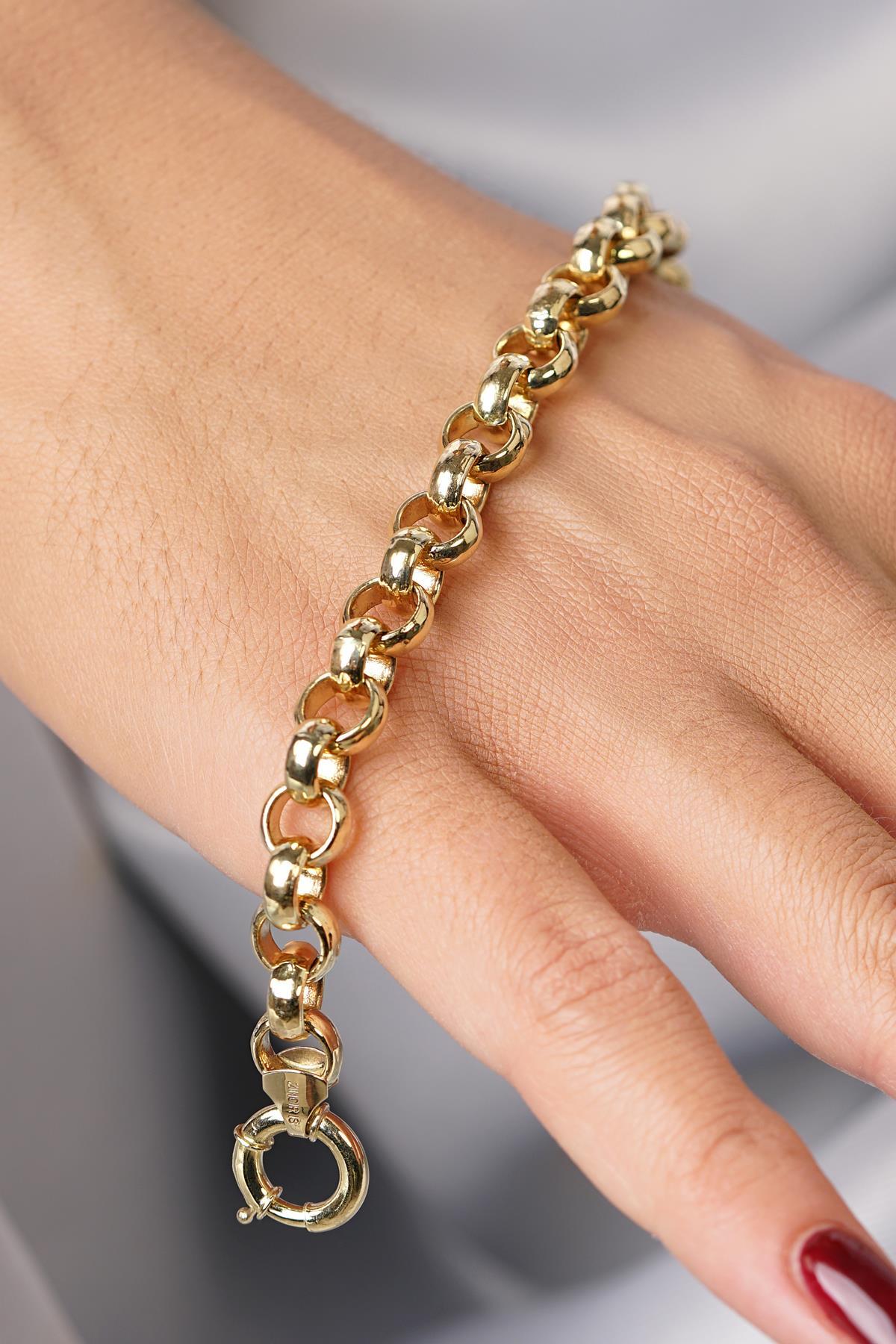 Güçlü duruşu ve modern çizgileriyle öne çıkan bu 14 Ayar Altın bileklik, maskülen zarafeti en sade formda sunar. 7.40 mm genişliği ve farklı uzunluk seçenekleriyle her bileğe tam uyum sağlayan bu model, yoğun parlaklığıyla dikkat çeker. Günlük kullanıma uygun tasarımı sayesinde hem klasik hem de modern stillerle kolayca kombinlenebilir.