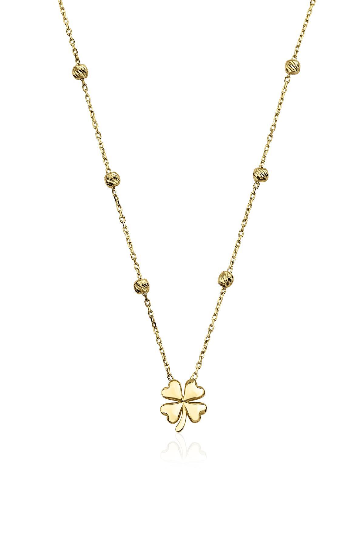14 Ayar Altın Dorika Top Detaylı Yonca Kolye