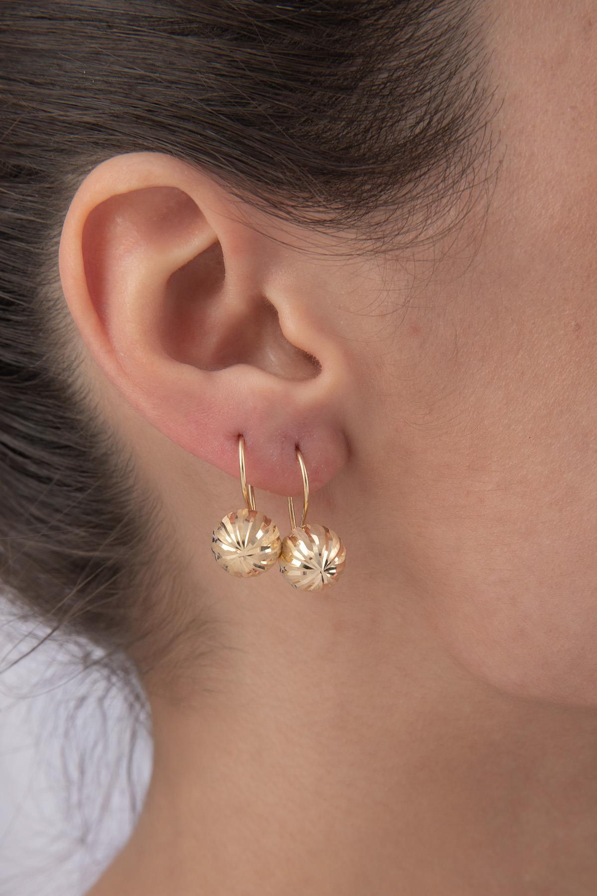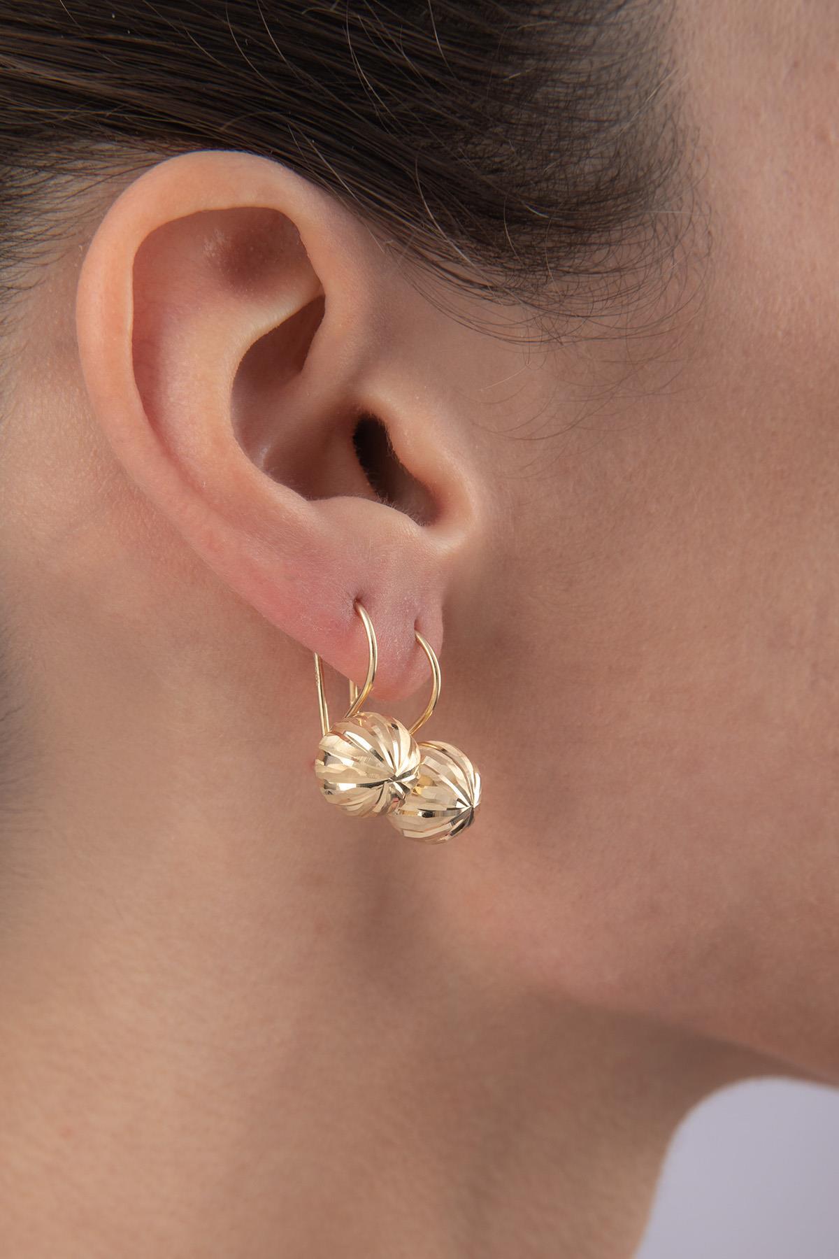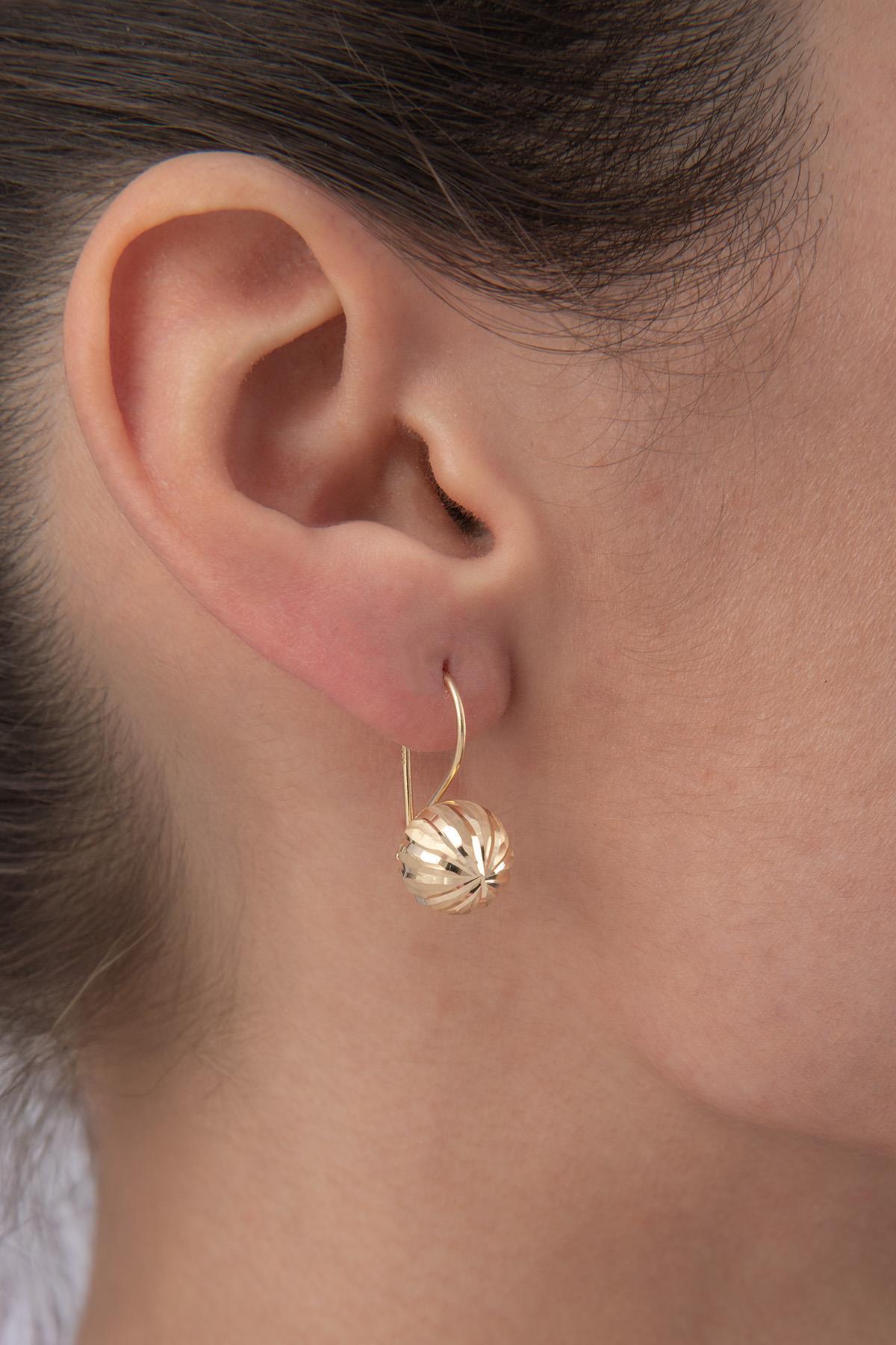 14 Ayar Altın düz kalemli orta top küpe, yüzeyindeki sade kalem işleme yapısıyla ışığı dengeli biçimde yansıtır. 2.37 gram ağırlığa sahip olan model, 9.88 mm top genişliği ve 2.08 cm yüksekliğiyle günlük kullanım için ideal ölçüleri sunar. Orta boy formu sayesinde hem tek başına hem de diğer küpelerle birlikte kullanımda uyum sağlar.