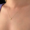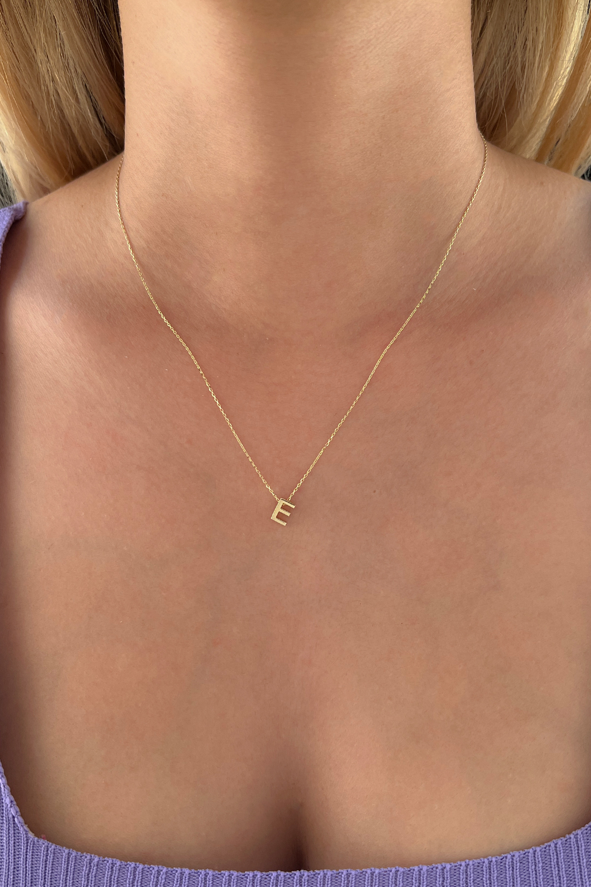 14 ayar altın harf kolye, 1,88 gram ağırlığında olup 42 cm uzunluğa ve 3 cm uzatma halkasına sahiptir. 4,77 mm genişlik ve 6,82 mm yükseklikteki harf detayıyla zarif bir duruş sunar.