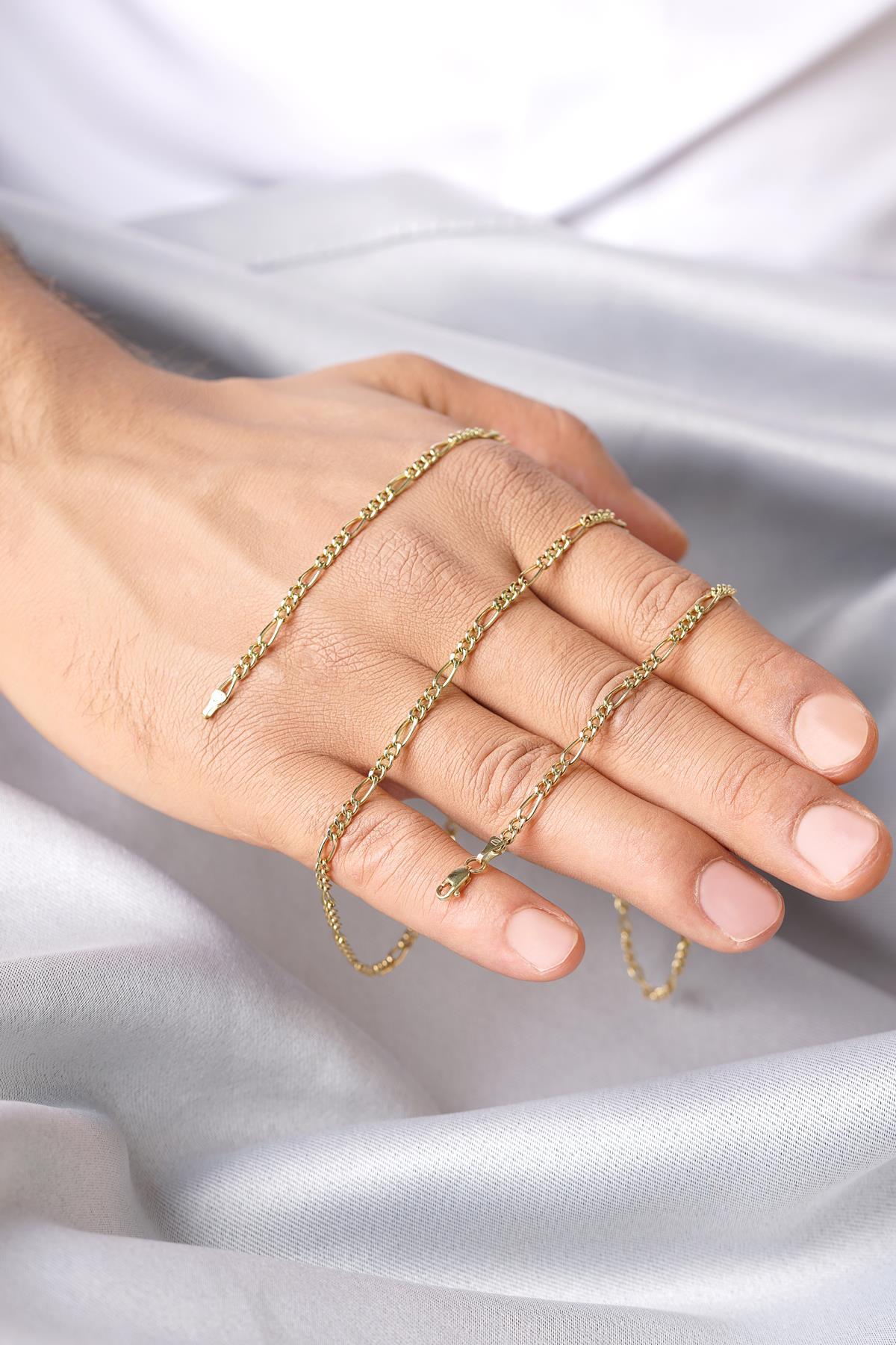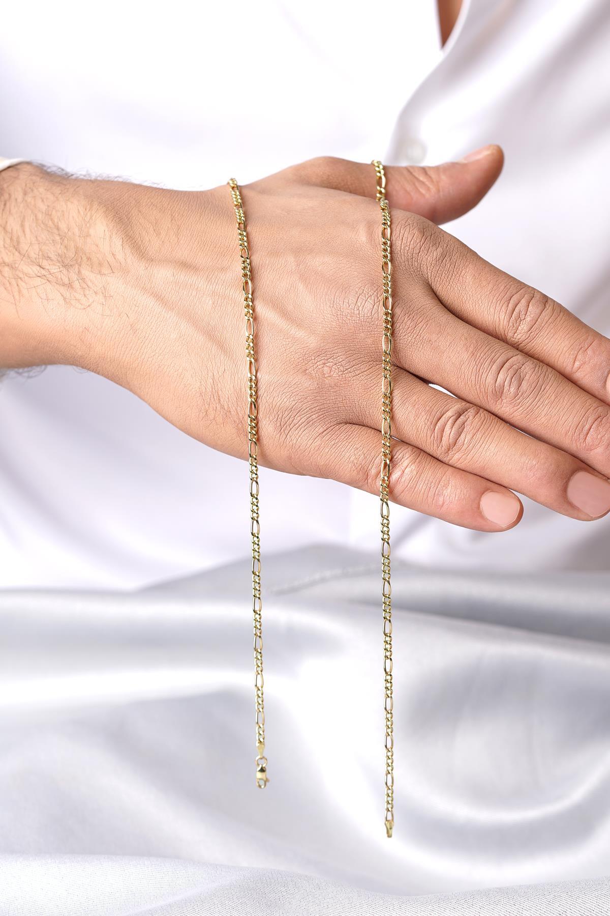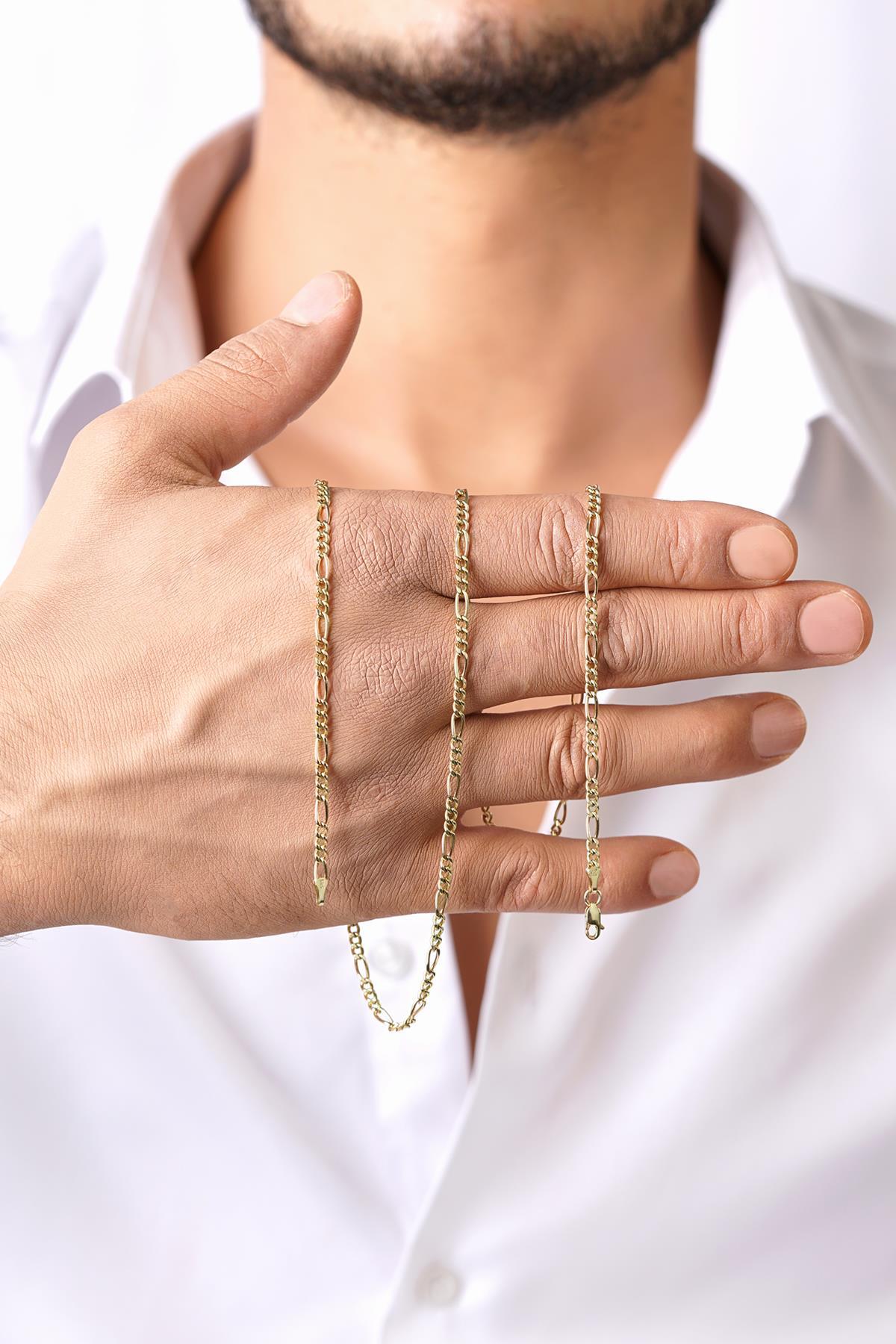 14 Ayar Altın Figaro Zincir Erkek Kolye 3.50 mm