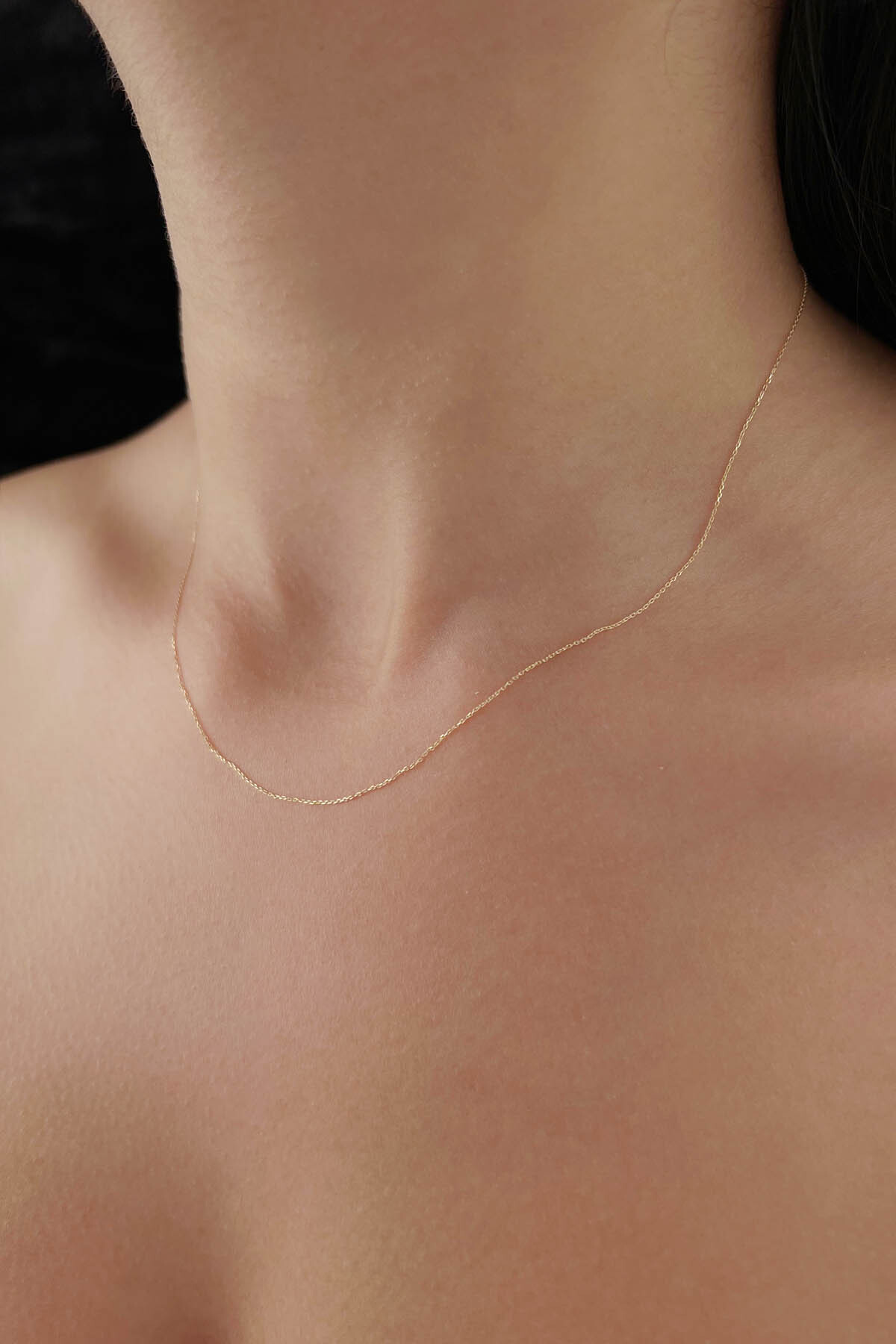 14 ayar altından İkra Kuyumculuk kalitesi ve işçiliği ile üretilen Forse Zincir, klasik ve sağlam yapısıyla bilinen, birbirine kenetlenen oval halkalardan oluşan temel bir zincir modelidir. Bu, en zarif ve ince seçeneklerden biri olup, zincir genişliği 0,70 mm‘dir. Bu modelin içi doludur, bu da ince yapısına rağmen dayanıklılık katar. Farklı uzunluk seçenekleriyle kişisel tercihlere ve zarif kolye ucu kombinlerine uyum sağlar. Günlük kullanıma uygundur.