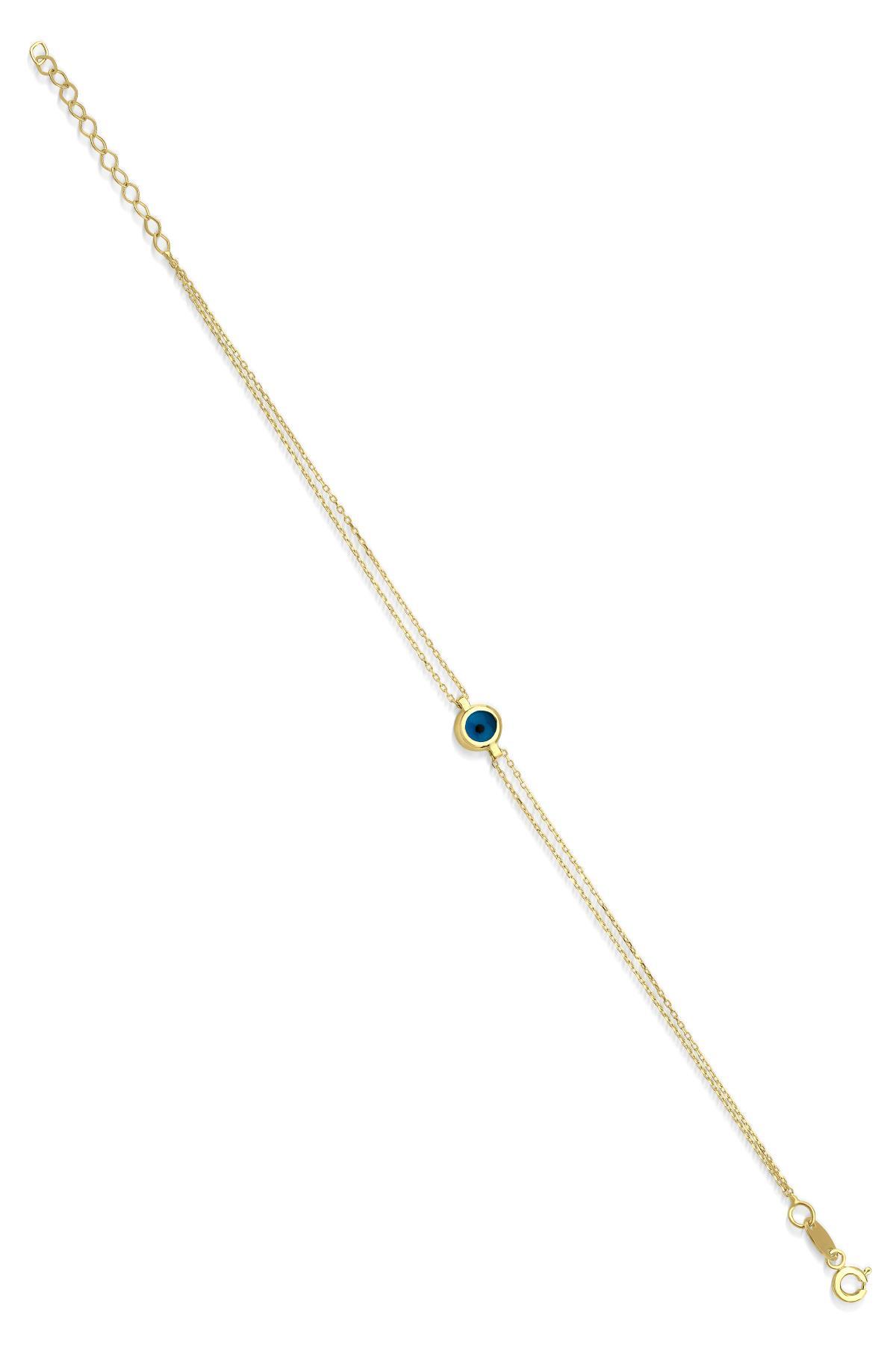 14 ayar altından İkra Kuyumculuk kalitesi ve işçiliği ile üretilen Göz Bileklik, sade ve zarif zincir üzerinde tek bir koruyucu nazar (göz) figürüyle modern bir şıklık sunar. Bilekliğin uzunluğu 18 cm + 3 cm uzatma halkası ile ayarlanabilir. Yaklaşık 1,55 gram ağırlığıyla hafif yapısıyla günlük kullanıma uygundur. Belirtilen ağırlıkta (+/-) %10 değişiklik gösterebilir.
