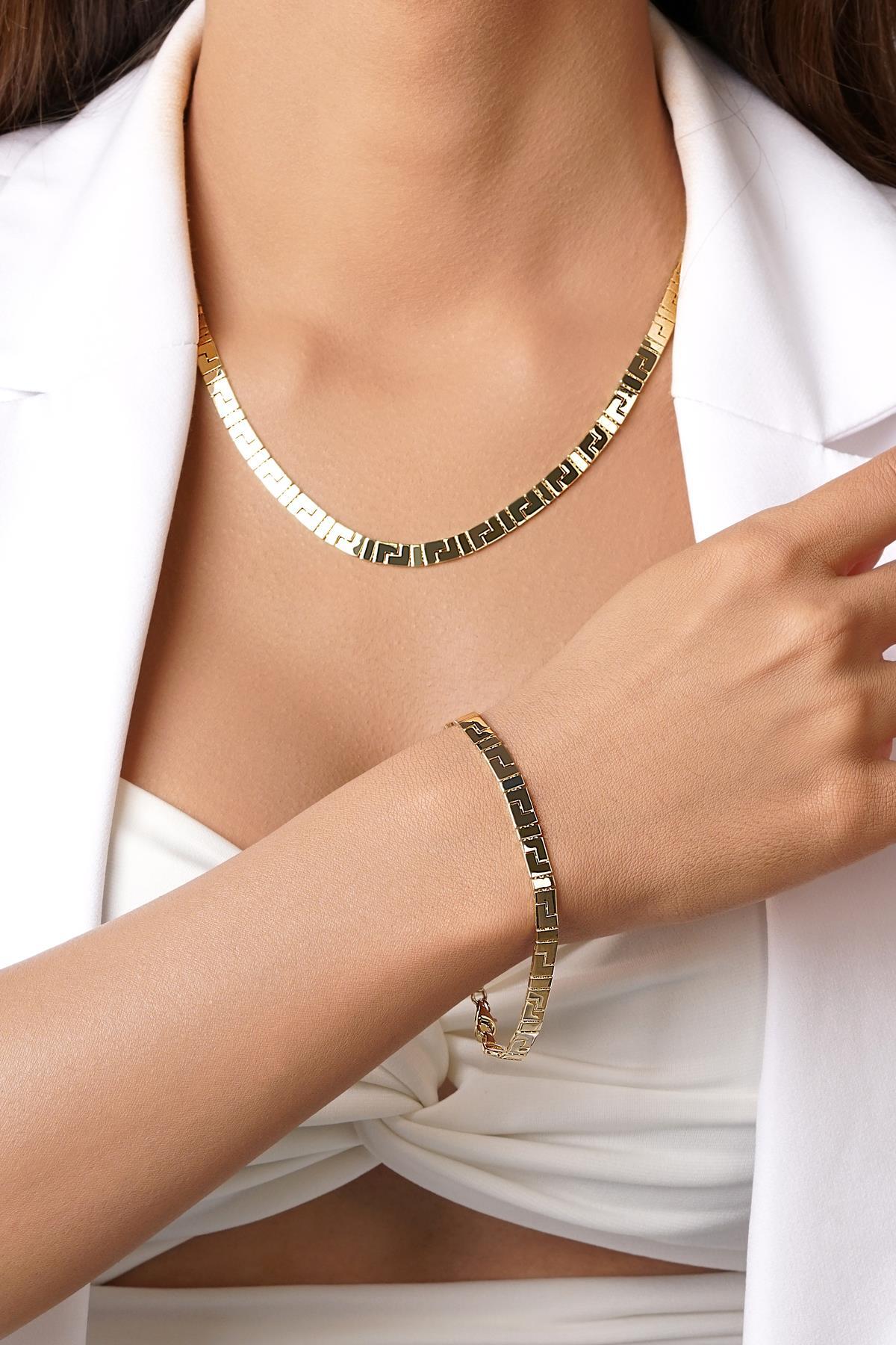 14 Ayar Altın Greek Zincir Set