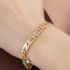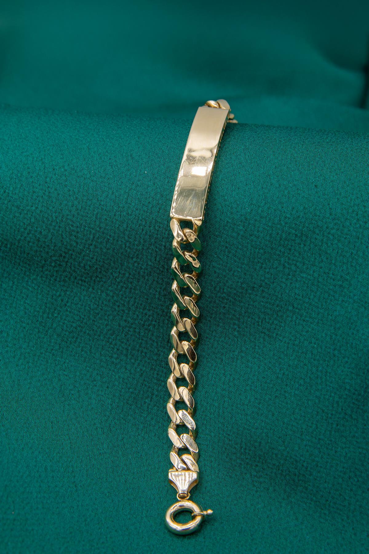 14 ayar altından İkra Kuyumculuk kalitesi ve işçiliği ile üretilen Gurmet Zincirli Künye Bileklik, sağlam Gurmet zincirini, üzerine isim yazılabilen sade bir künye plakasıyla birleştirir. Bilekliğin uzunluğu 19 cm ve zincir/künye genişliği 7,50 mm‘dir. Yaklaşık 9,55 gram ağırlığıyla günlük kullanıma uygun, tok ve şık bir parçadır. Belirtilen ağırlıkta (+/-) %10 değişiklik gösterebilir.