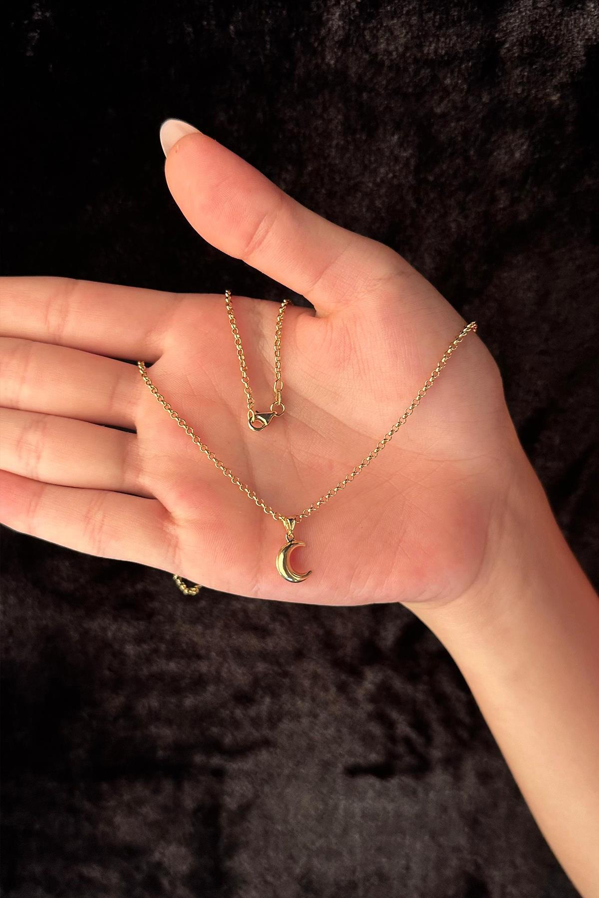 14 Ayar Altın Halka Doch Zincir Hilal Ay Uçlu Kolye