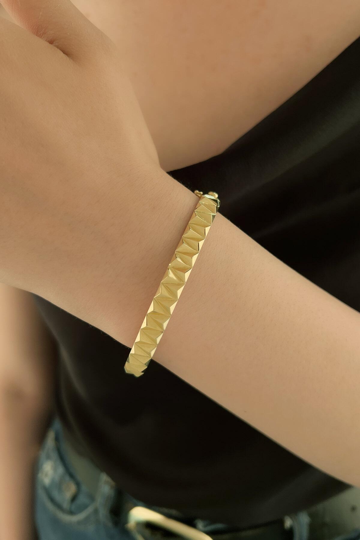 14 Ayar Altın İnce Sıralı Piramitler Kelepçe