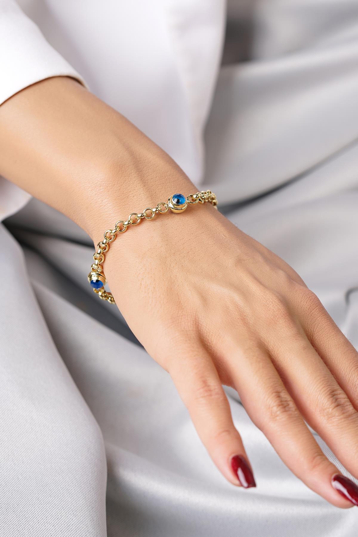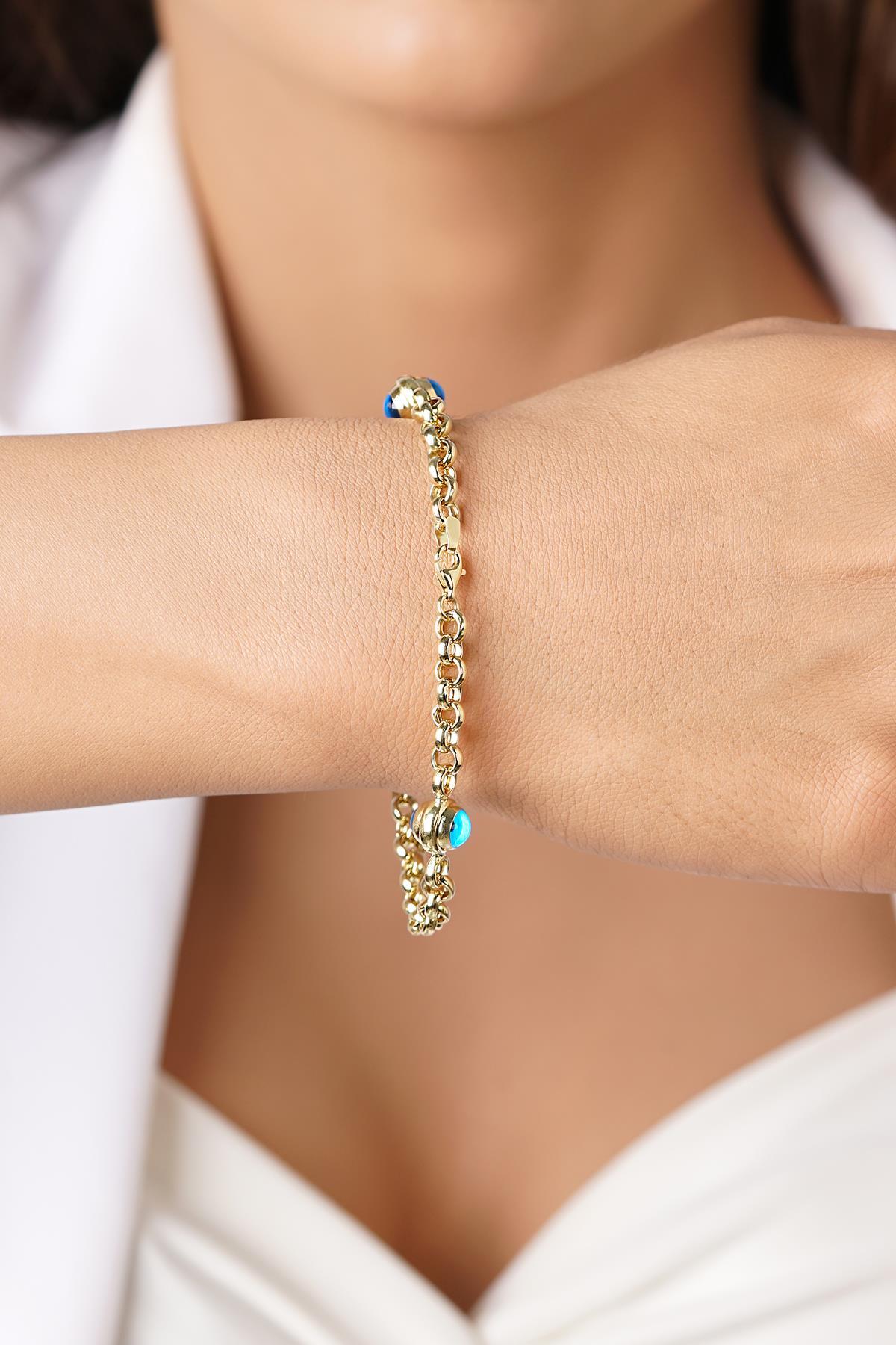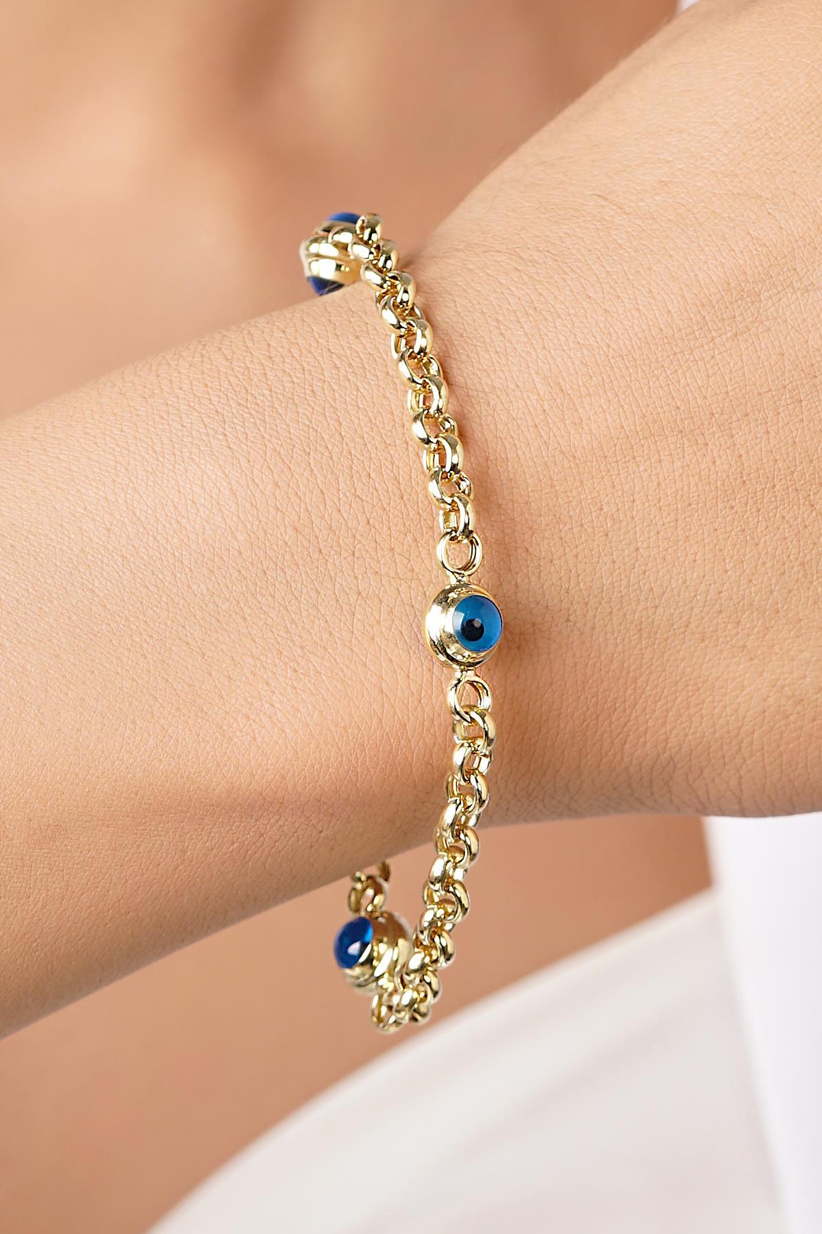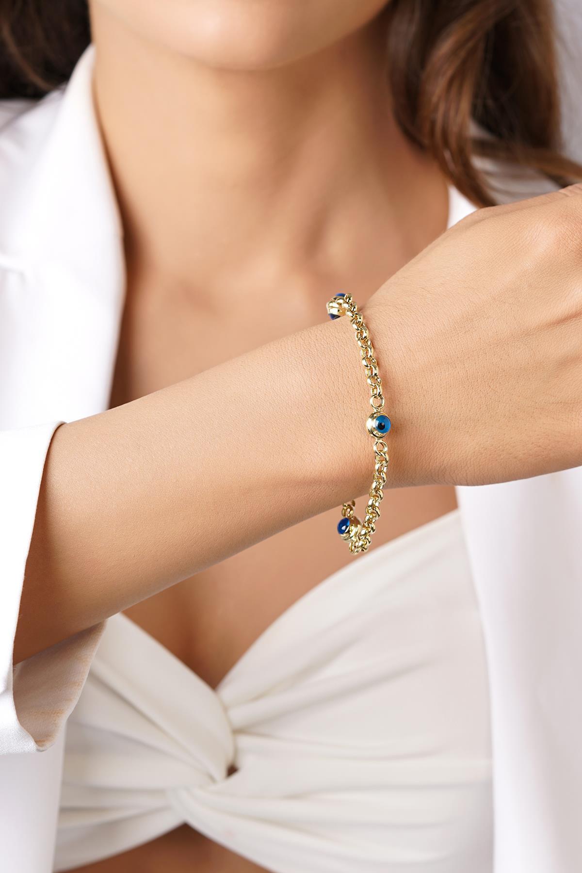 14 Ayar Altın İnce Üç Göz Detaylı Doch Bileklik