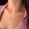 14 Ayar Altın İpek Zincir Yonca Uçlu Kolye
