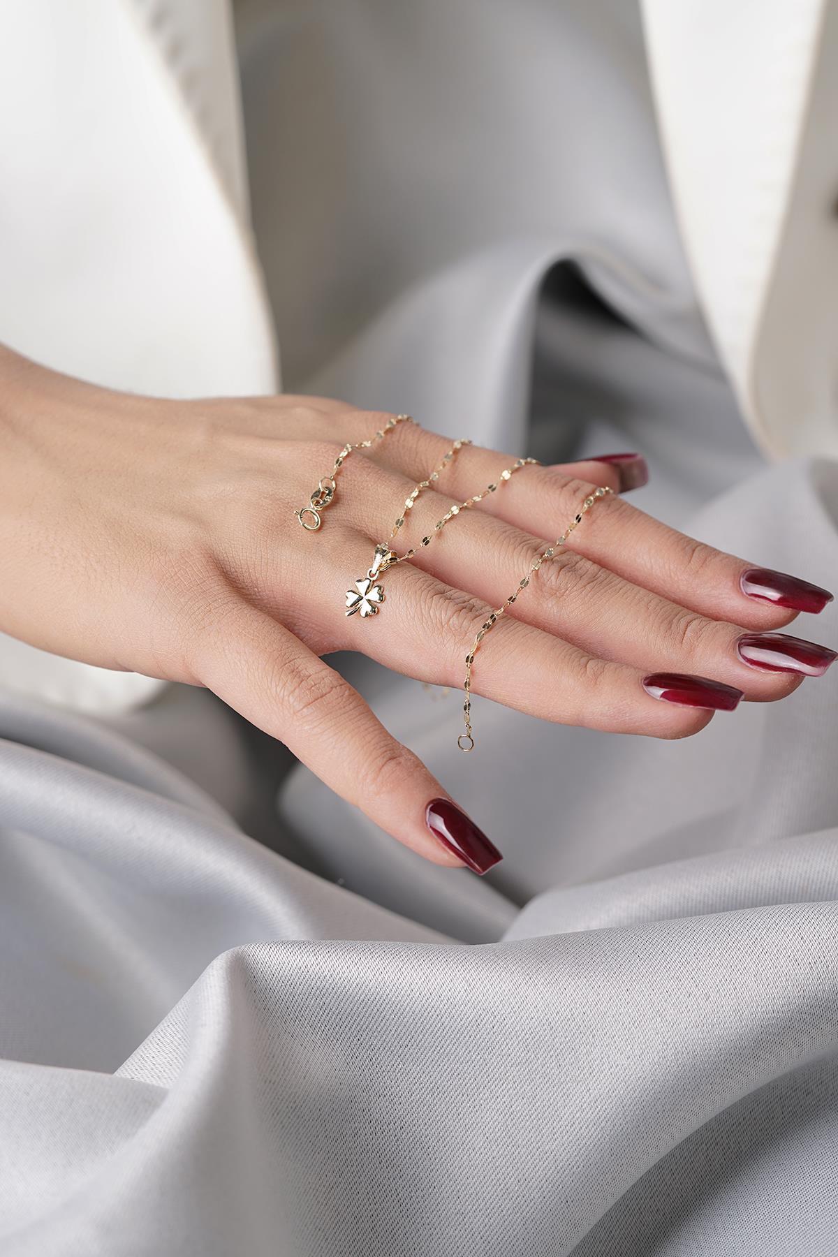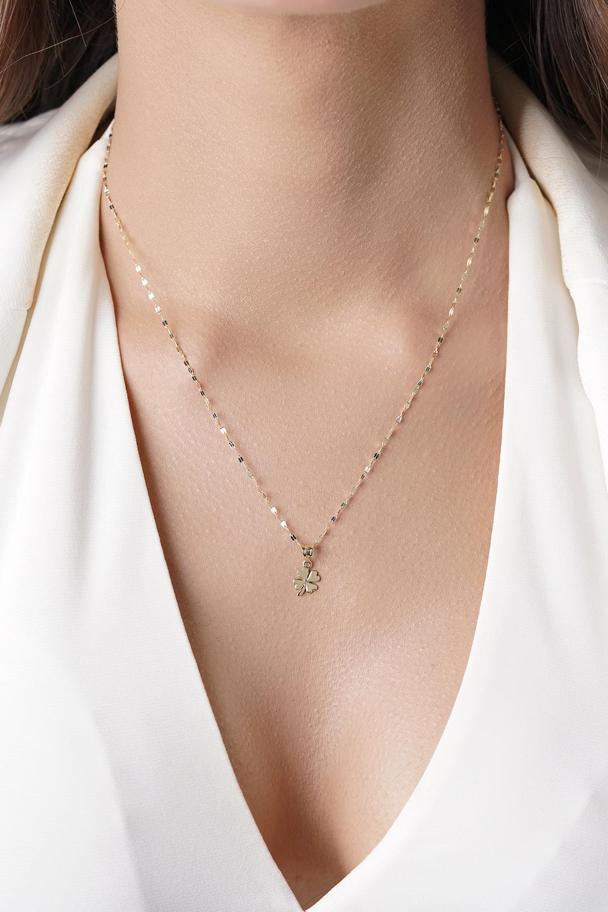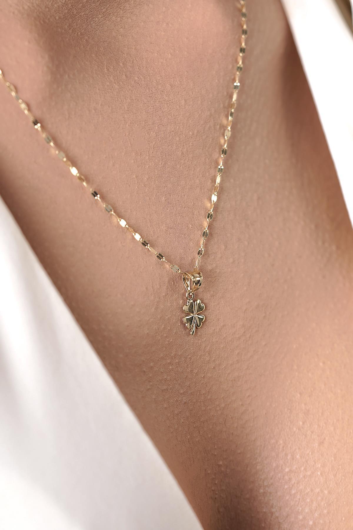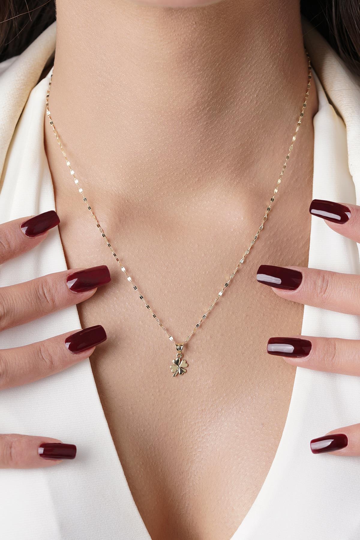 14 Ayar Altın Işıltılı Aynalı Zincir Yonca Uçlu Kolye