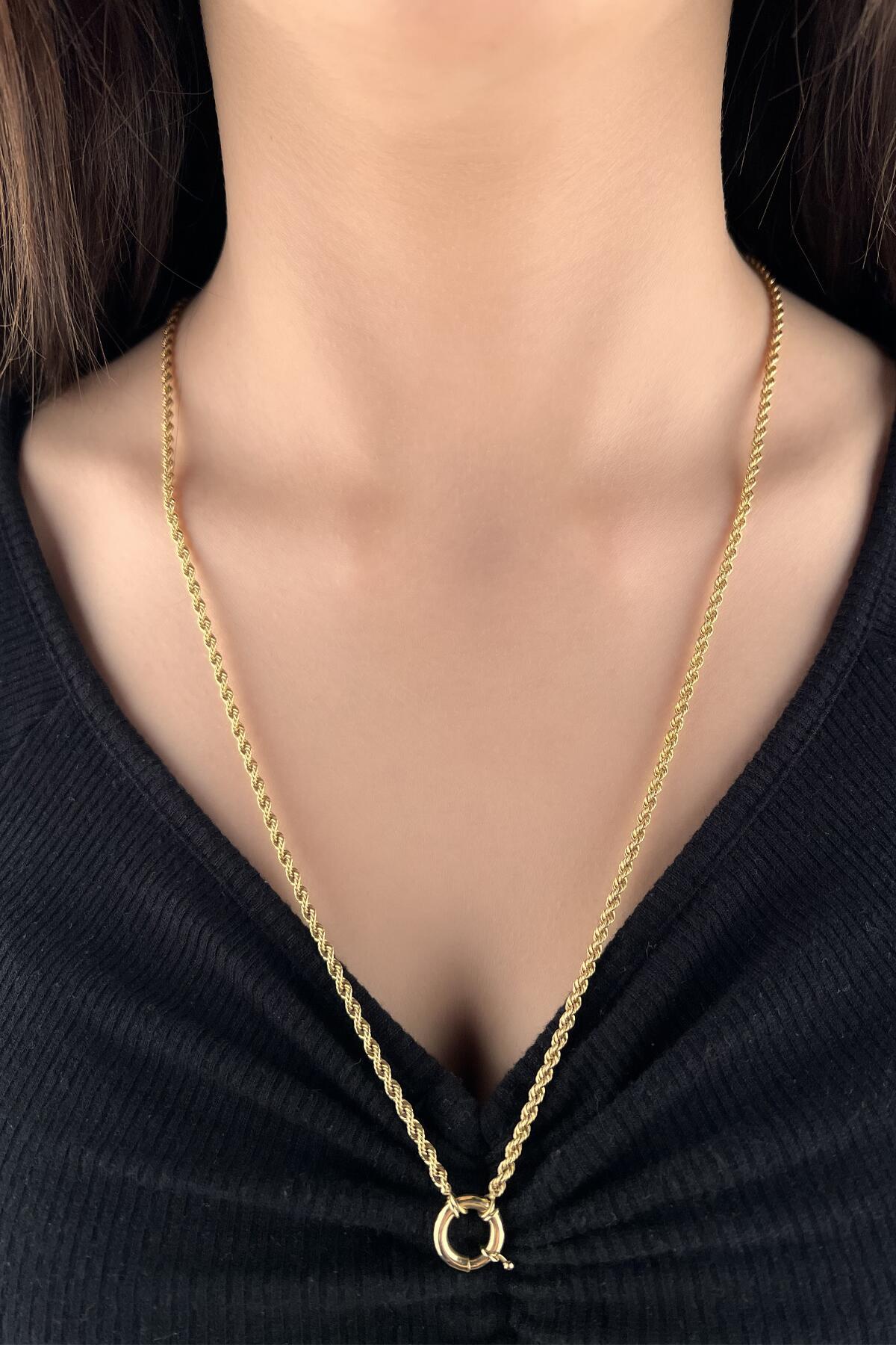 3,90 mm genişliğindeki burgu halat zincir, 45–70 cm uzunluk seçenekleriyle hem günlük kullanım hem de özel günler için ideal bir şıklık sunar. 5,70–8,45 gram ağırlığıyla değerli ve hafif bir kullanım sağlar. 14 Ayar altından üretilmiş olup, kaliteli işçiliği ile uzun ömürlü kullanım sağlar. Ürün, sertifika, fatura ve sigortalı kargo ile güvenle teslim edilir.