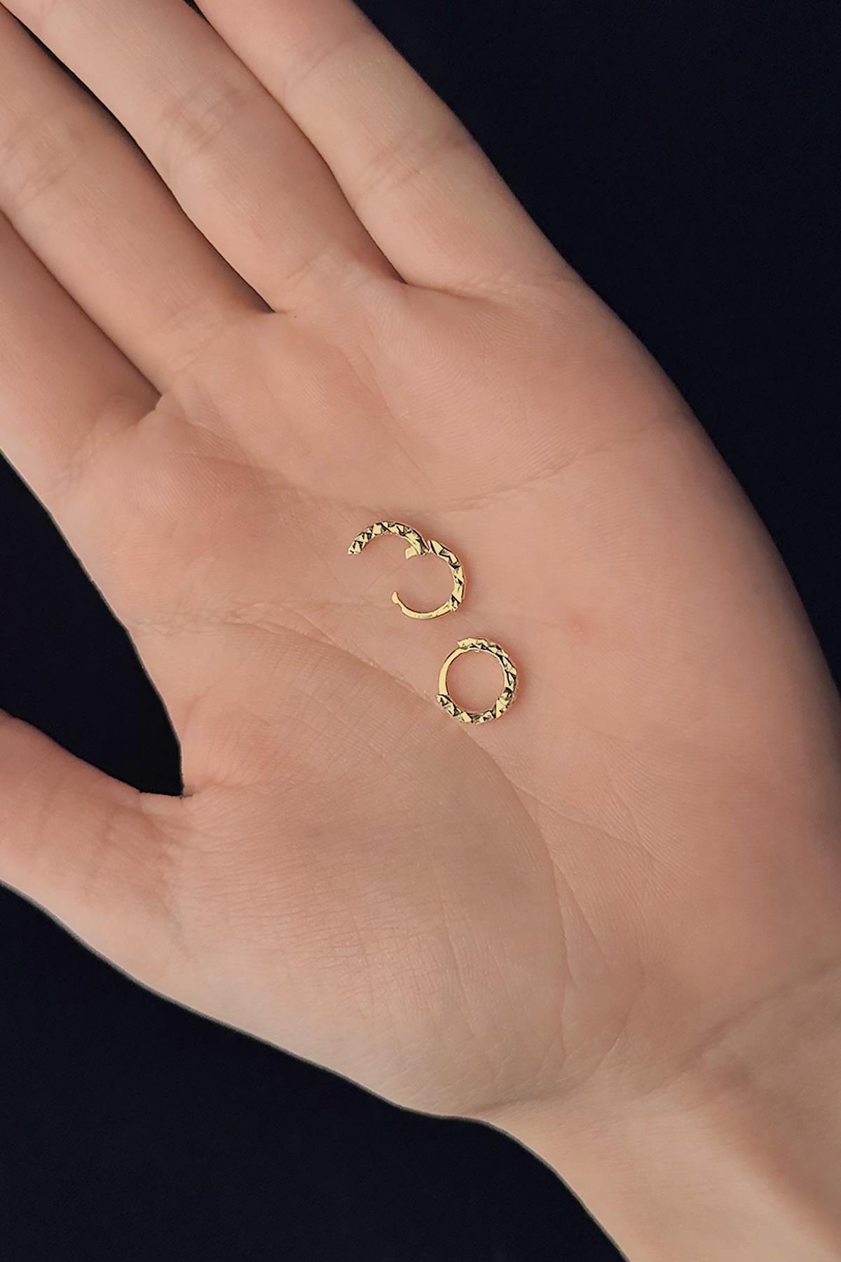 14 Ayar Altın Işıltılı Halka Küpe Küçük