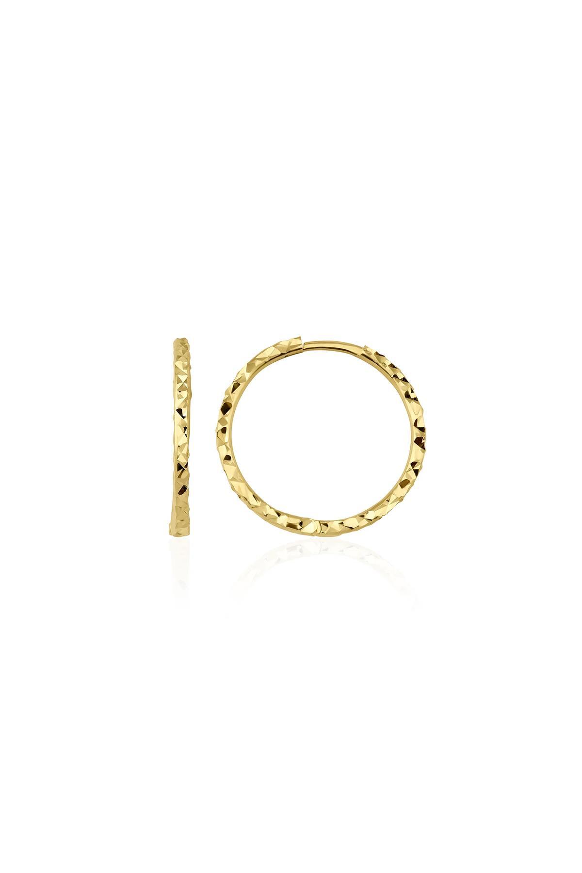 14 ayar altından İkra Kuyumculuk kalitesi ve işçiliği ile üretilen Işıltılı Halka Küpe, sade halka formunda olmasına rağmen yüzeyindeki özel kesim veya doku sayesinde parlak ve göz alıcı bir ışıltı sunar. Küpenin çapı 21,20 mm ve kalınlığı 1,50 mm‘dir. Ürünün yaklaşık çift ağırlığı 2,64 gramdır. Tüm küpe modellerimiz çift olarak gönderilmektedir ve günlük kullanıma uygundur.