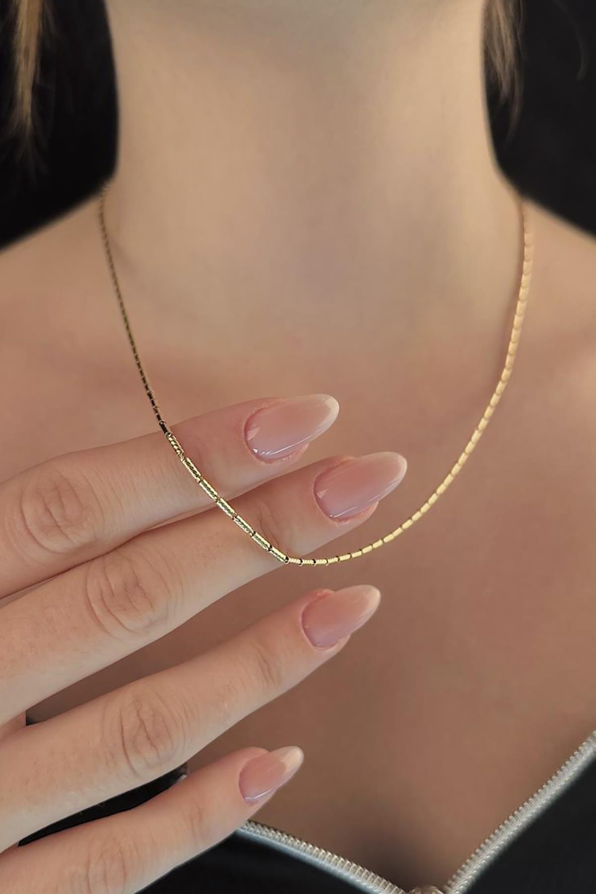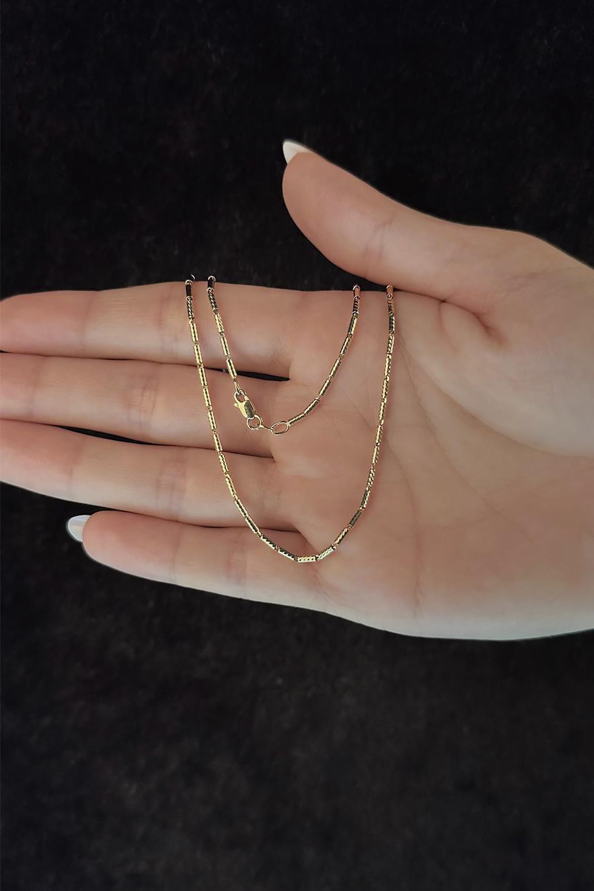 14 ayar altından üretilen Işıltılı Kolye, yaklaşık 6,94 gram ağırlığında, 55 cm uzunluğunda ve 1,55 mm genişliğindedir. Yüksek parlaklığa sahip bu zincir kolye, 1 yıl garantilidir.