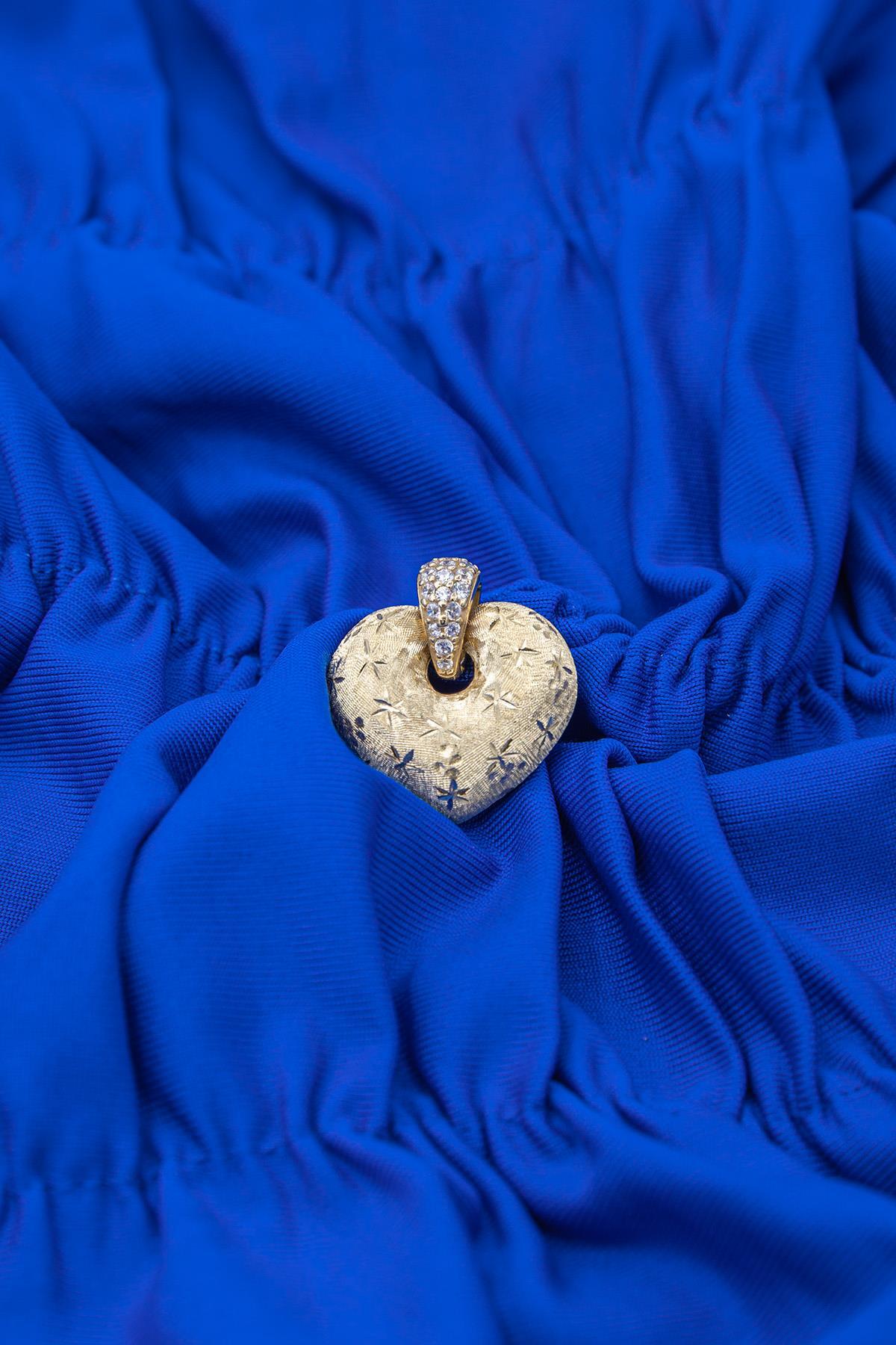 14 Ayar Altın Işıltılı Orta Kalp Kolye Ucu