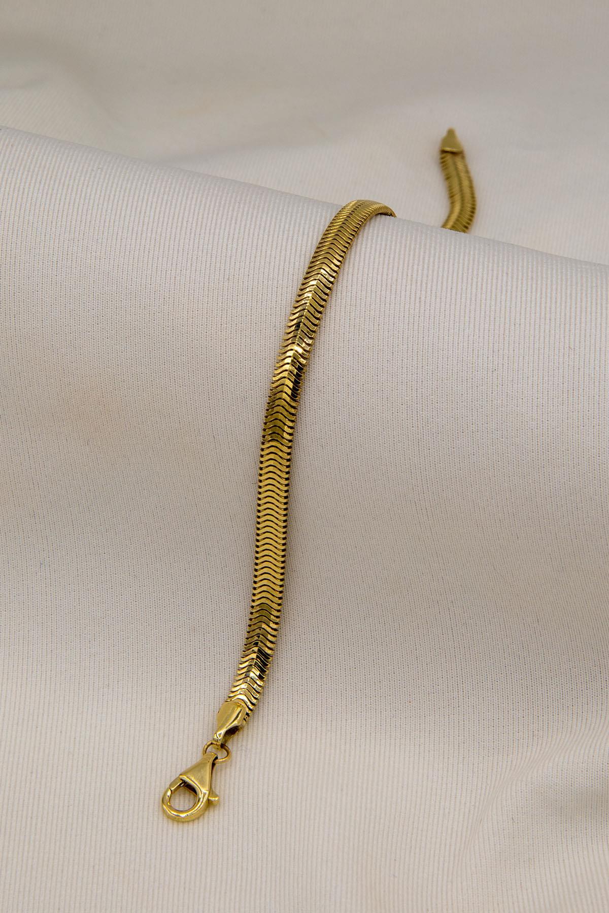 14 ayar altından İkra Kuyumculuk kalitesi ve işçiliği ile üretilen İtalyan Balıksırtı Bileklik, İtalyanların zarif balıksırtı (herringbone) zincir deseniyle modern ve akışkan bir şıklık sunar. Bilekliğin genişliği 4,20 mm‘dir ve farklı uzunluk seçenekleri mevcuttur. Belirtilen ağırlıkta (+/-) %10 değişiklik gösterebilir.