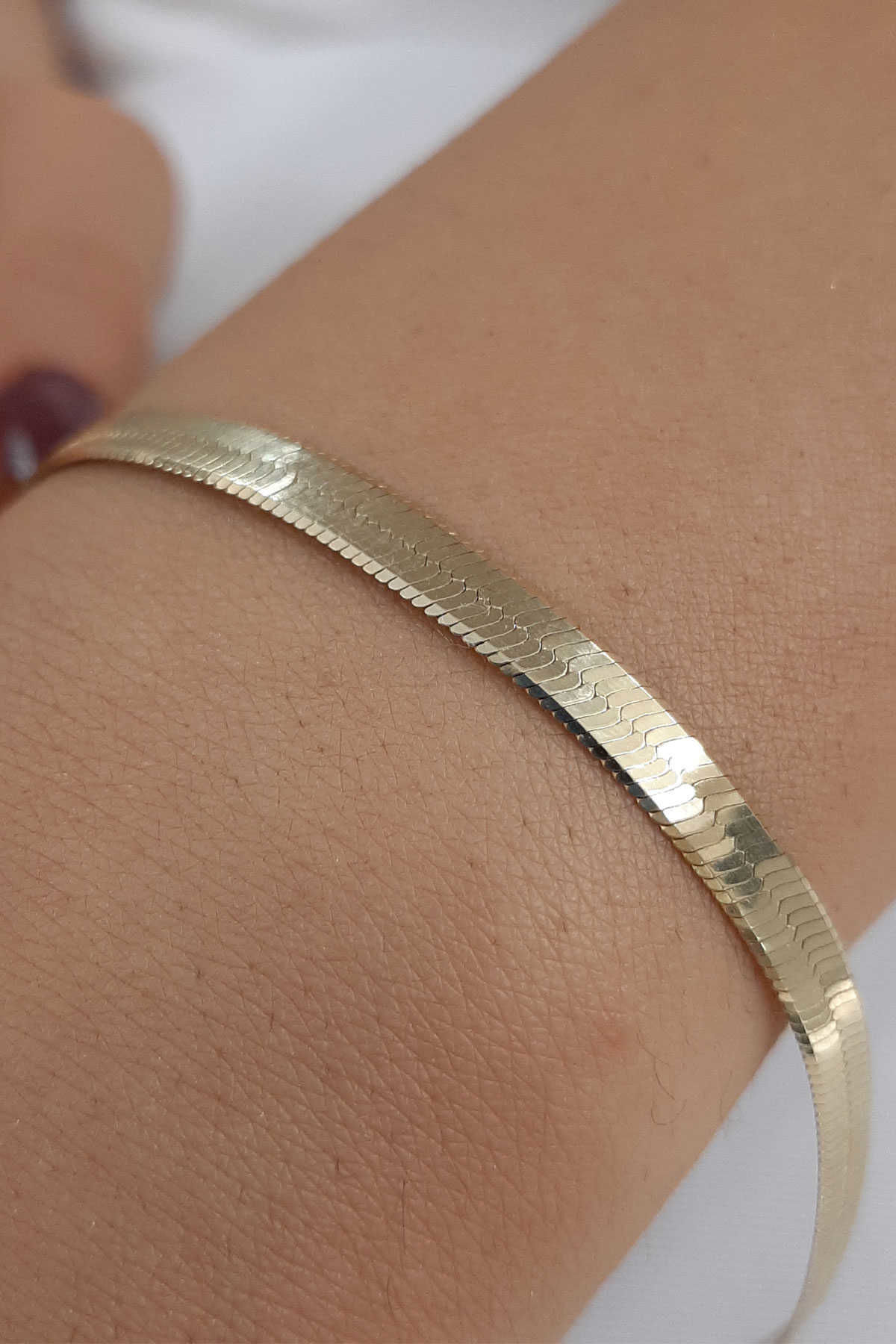 14 ayar altından İkra Kuyumculuk kalitesi ve işçiliği ile üretilen İtalyan Ezme Orta Boy Bileklik, Ezme (Forza) zincir stilinin İtalyan parlaklığıyla birleşmesi sonucu ortaya çıkan, orta kalınlıkta modern bir tasarıma sahiptir. Bilekliğin genişliği 4,25 mm ve toplam uzunluğu 19 cm‘dir. Yaklaşık 6,05 gram ağırlığıyla günlük kullanıma uygun, zarif bir parçadır. Belirtilen ağırlıkta (+/-) %10 değişiklik gösterebilir.