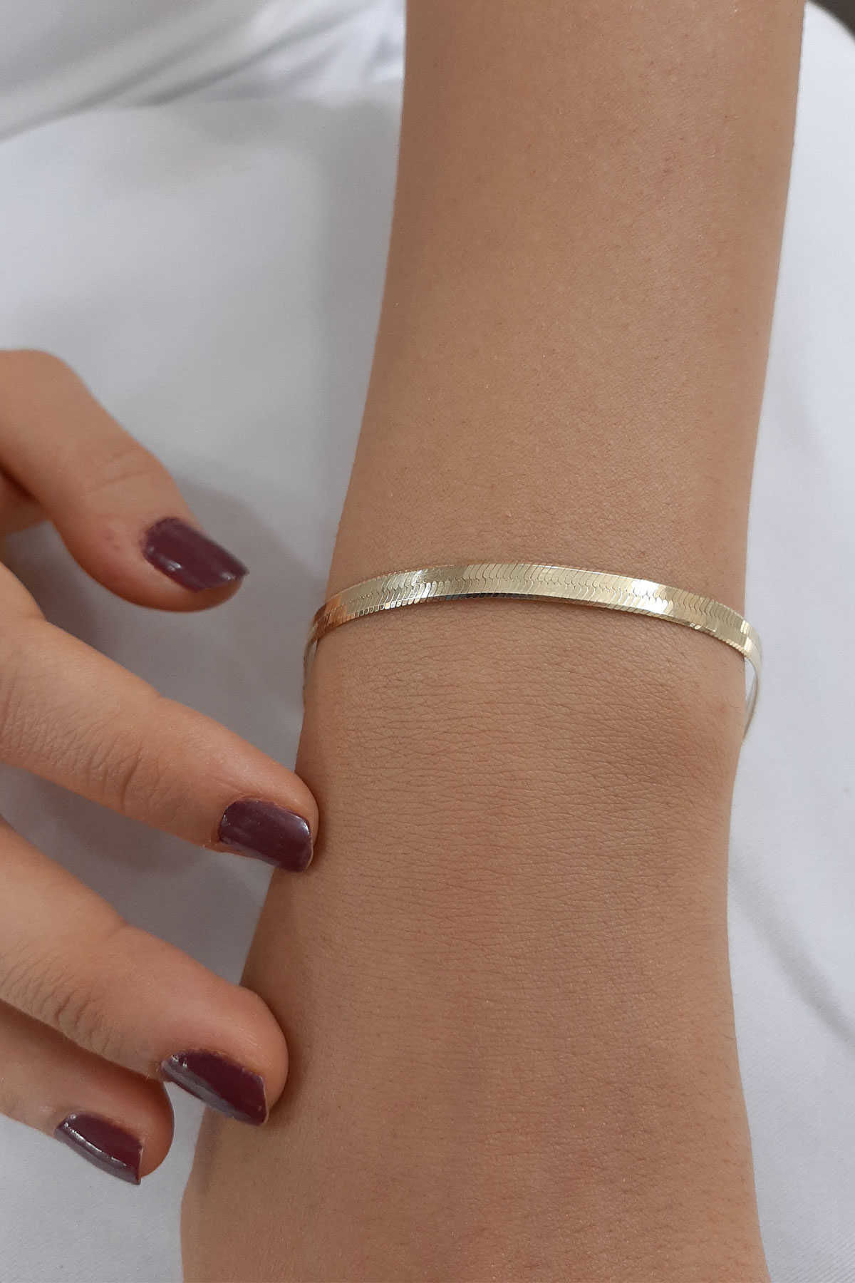 14 Ayar Altın İtalyan Ezme Orta Boy Bileklik