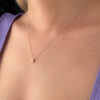14 ayar altın harf kolye, 1,56 gram ağırlığında olup 42 cm uzunluk ve 3 cm uzatma halkasına sahiptir. 4,70 mm genişlik ve 6,85 mm yükseklikteki harf detayıyla sade ve zarif bir duruş sunar.