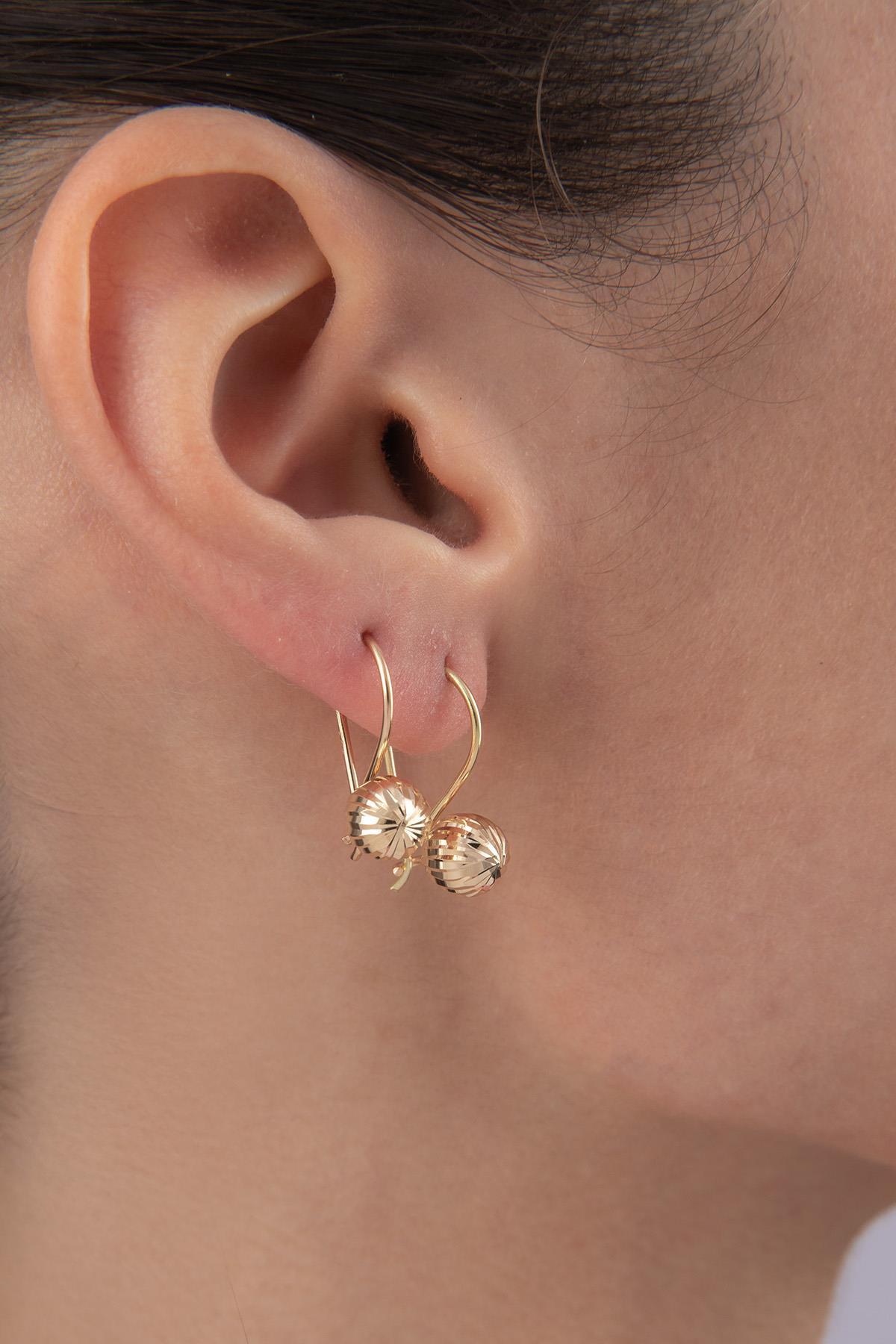 14 Ayar Altın Kalem İşlemeli Mini Top Küpe