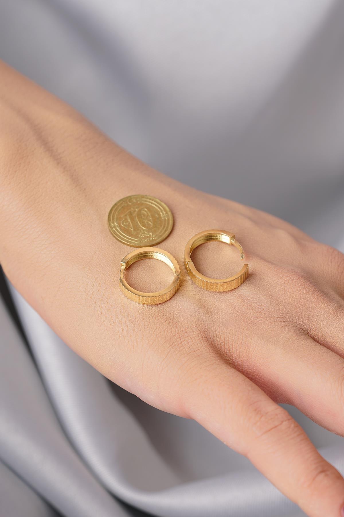 Tasarım Tipi Kalem İşlemeli Midi Halka Küpe (Çift)