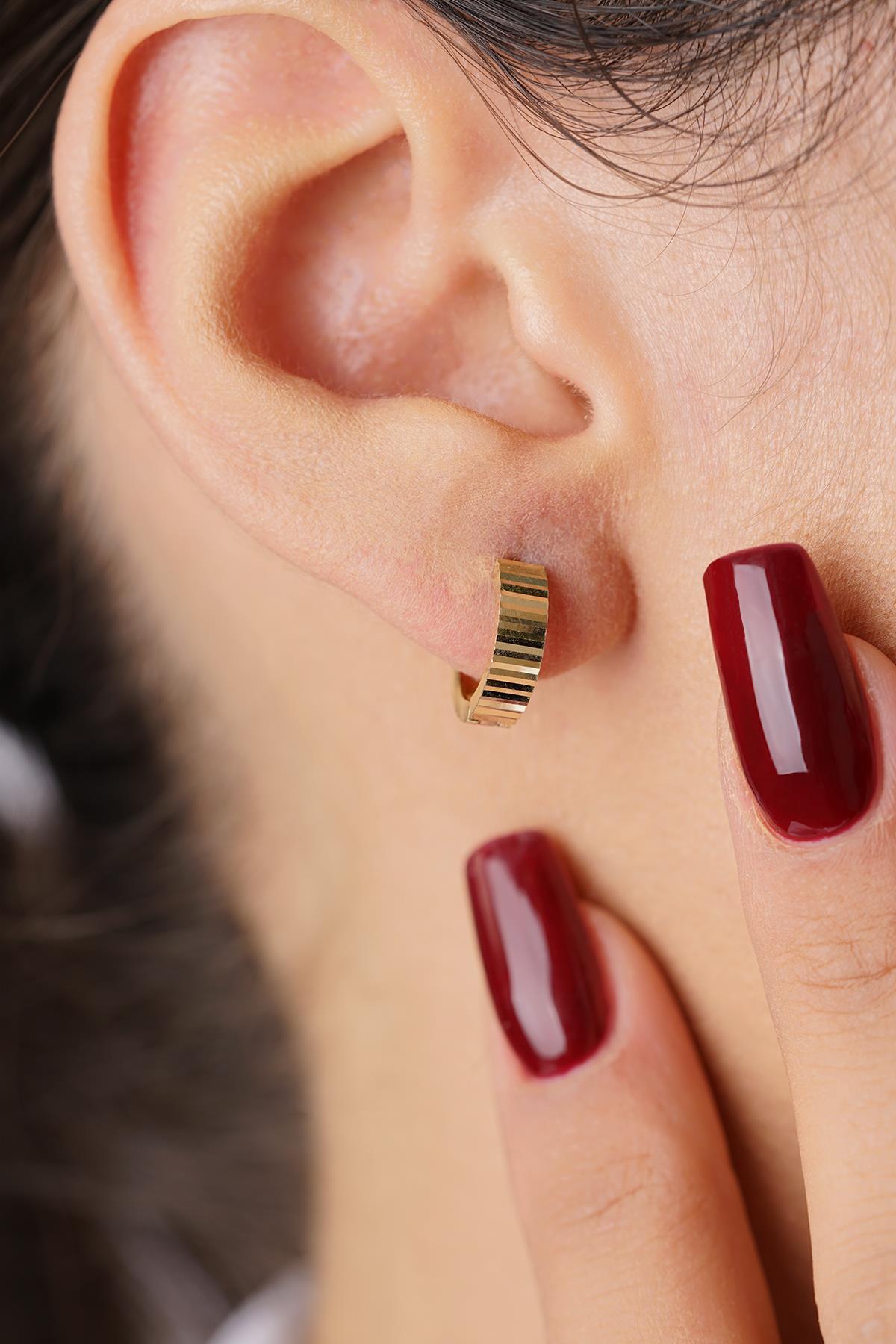 14 Ayar Altın Kalemli Minik Halka Küpe