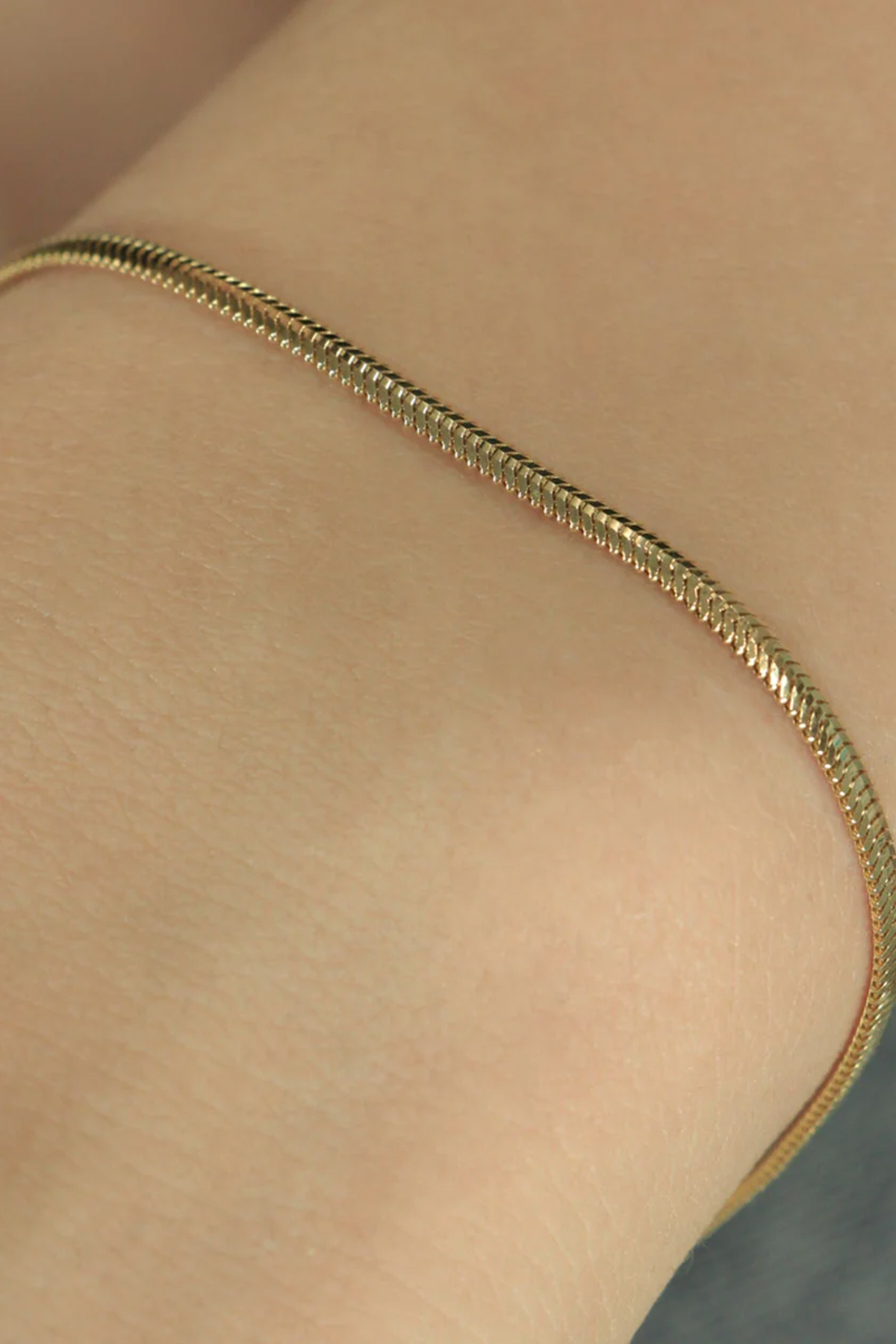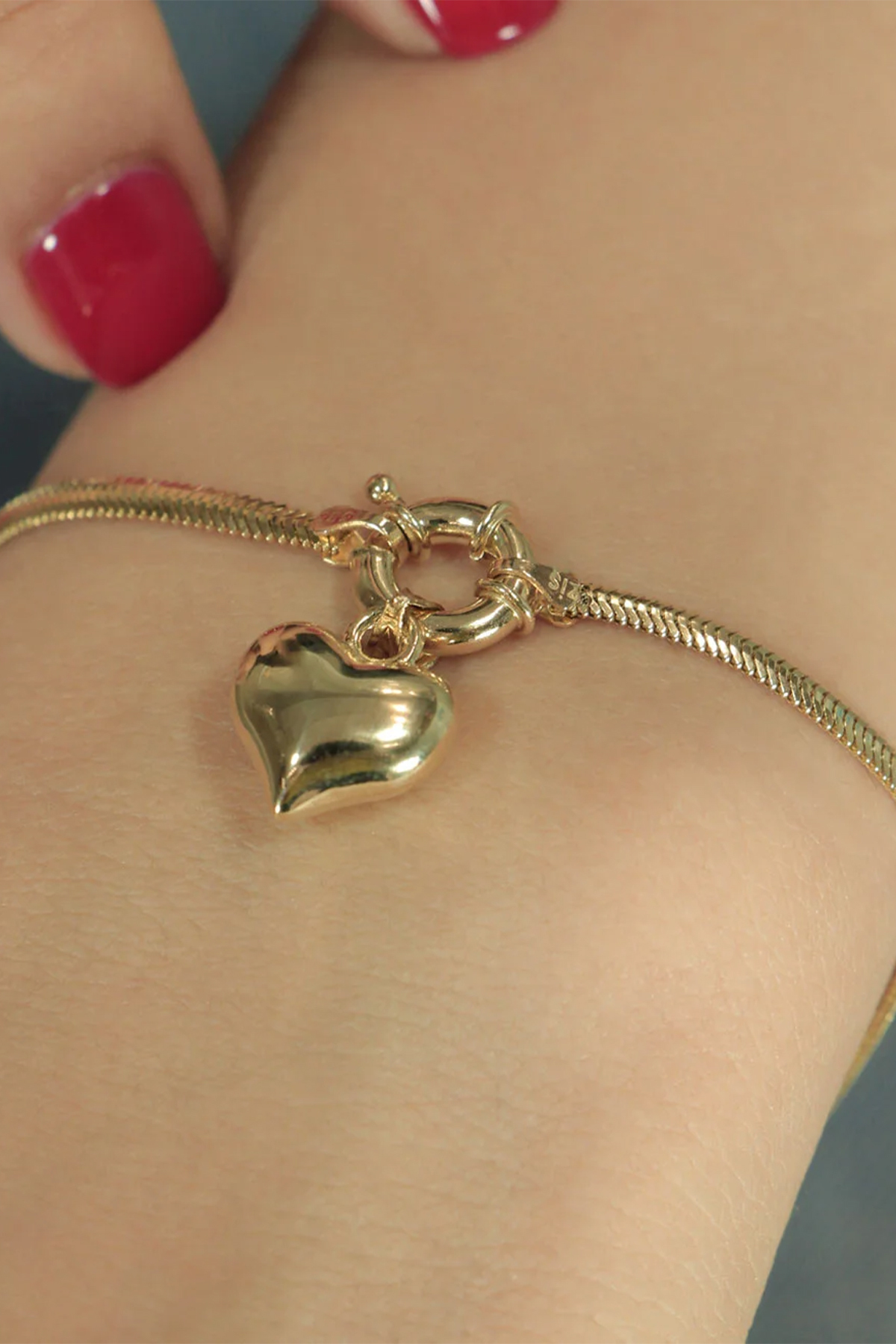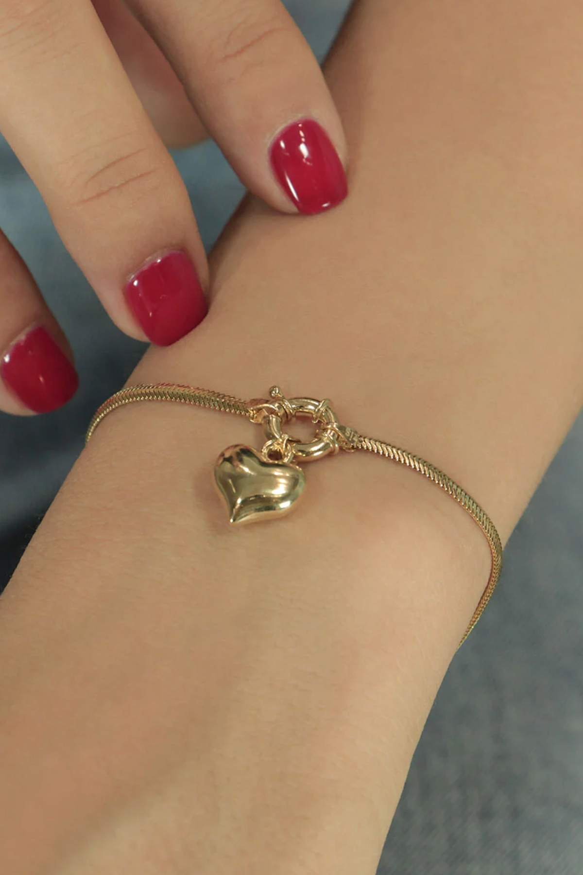 14 ayar altından İkra Kuyumculuk kalitesi ve işçiliği ile üretilen Kalp Detaylı Balıksırtı Bileklik, İtalyan balıksırtı (herringbone) zincirinin zarif ve akışkan yapısını, sevimli ve romantik kalp figürü detayıyla tamamlayarak modern bir şıklık sunar. Bilekliğin zincir genişliği 2,50 mm ve toplam uzunluğu 19 cm‘dir. Yaklaşık 3,95 gram ağırlığıyla günlük kullanıma uygun, zarif bir parçadır. Belirtilen ağırlıkta (+/-) %10 değişiklik gösterebilir.