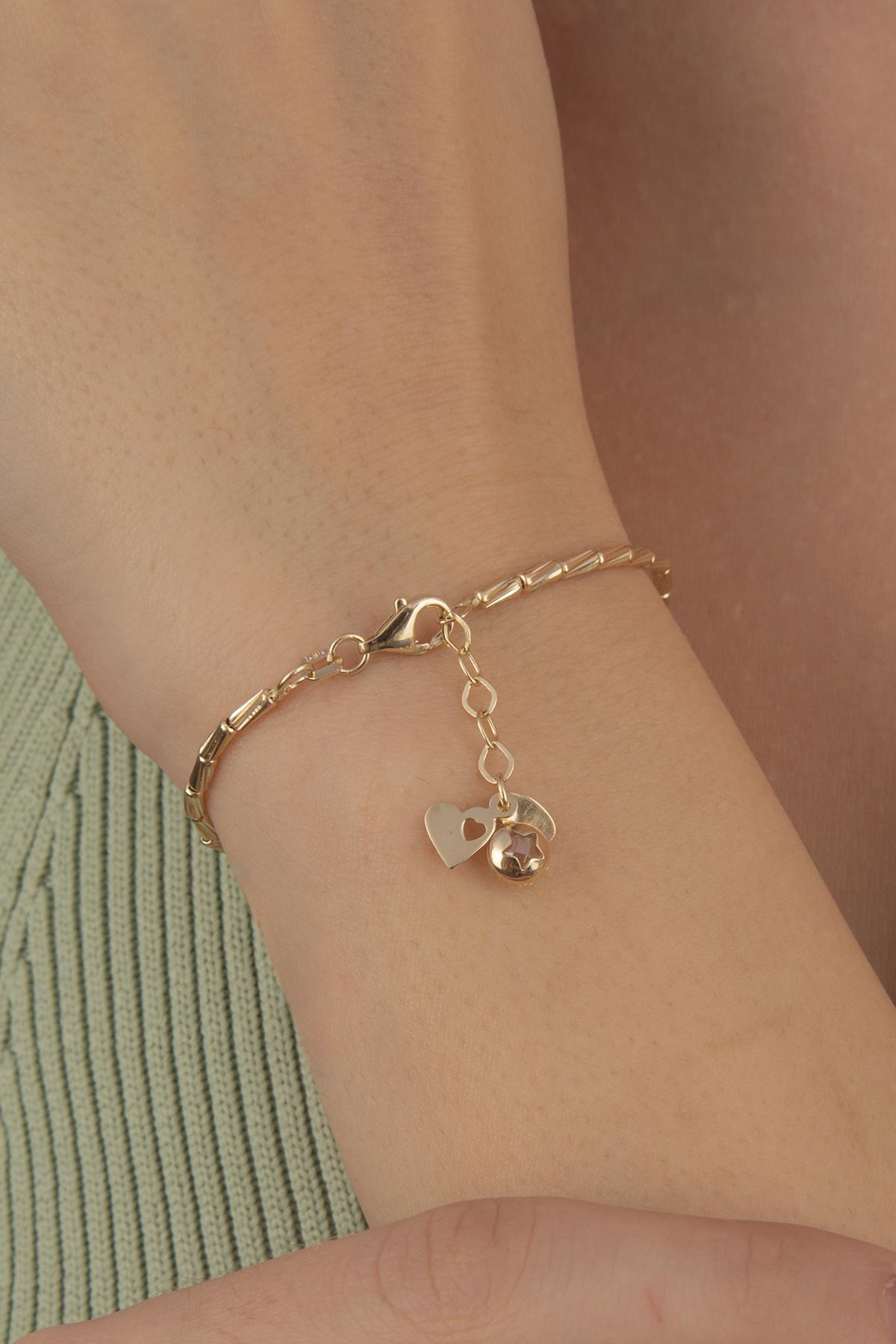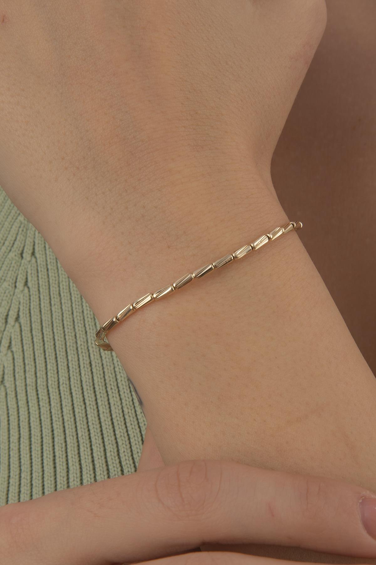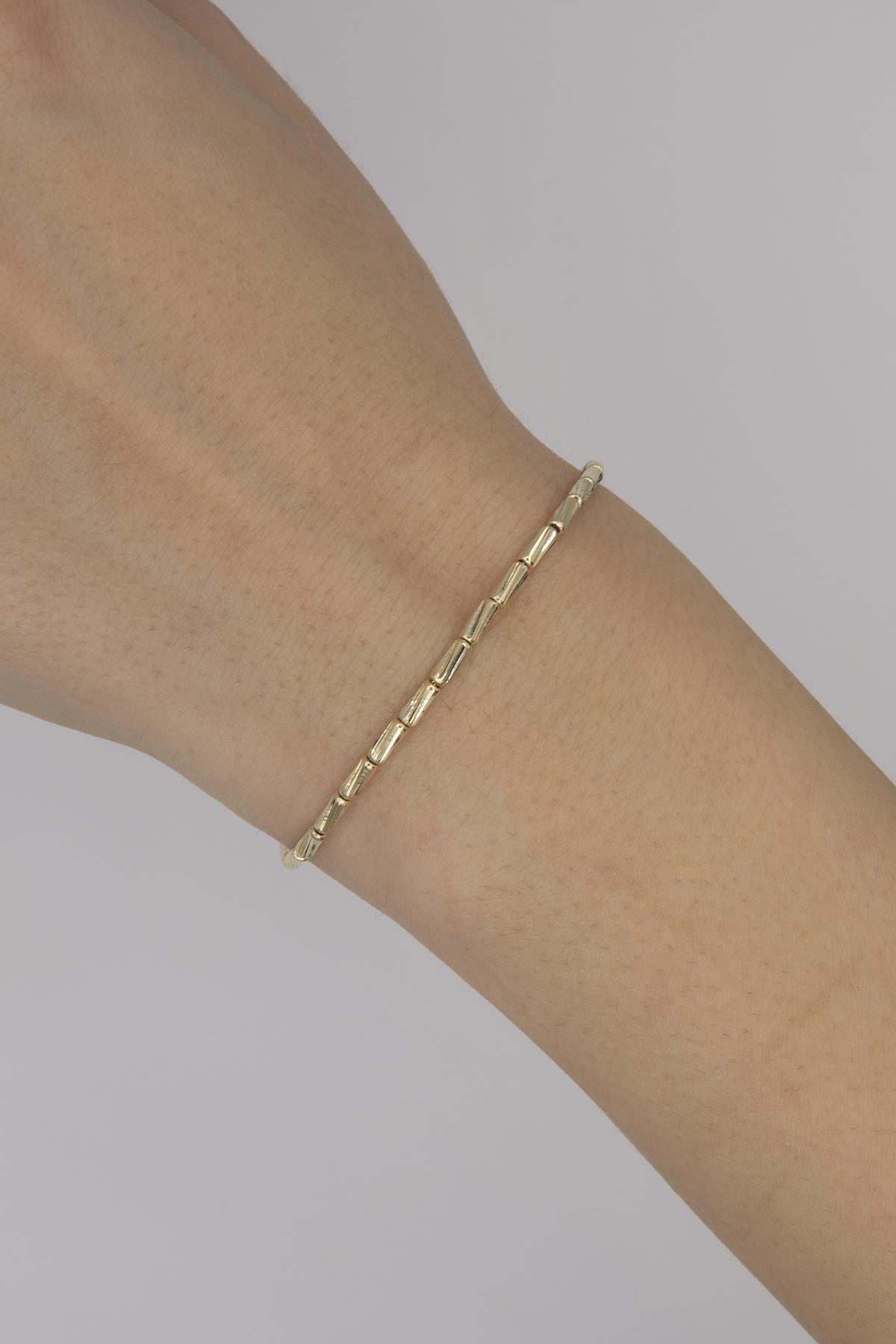 14 Ayar Altın Roller Zincir Bileklik, 1.90 mm genişliği ve 17 cm uzunluk + 1 cm uzatma halkası ile bilekte zarif bir duruş sunar. 3.43 gram ağırlığıyla hafif ve konforludur. Modern tasarımı günlük kullanımda şıklığınızı tamamlar.