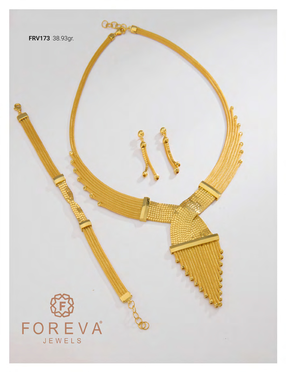 14 Ayar Altın Kalze Set – 38.93 gram ağırlığında, kolye, bileklik ve küpeden oluşan şık bir takı setidir. Ultralight kalze tekniğiyle üretilen bu set, hem günlük kullanıma hem de özel günlere, düğün ve nişan törenlerine uygundur.