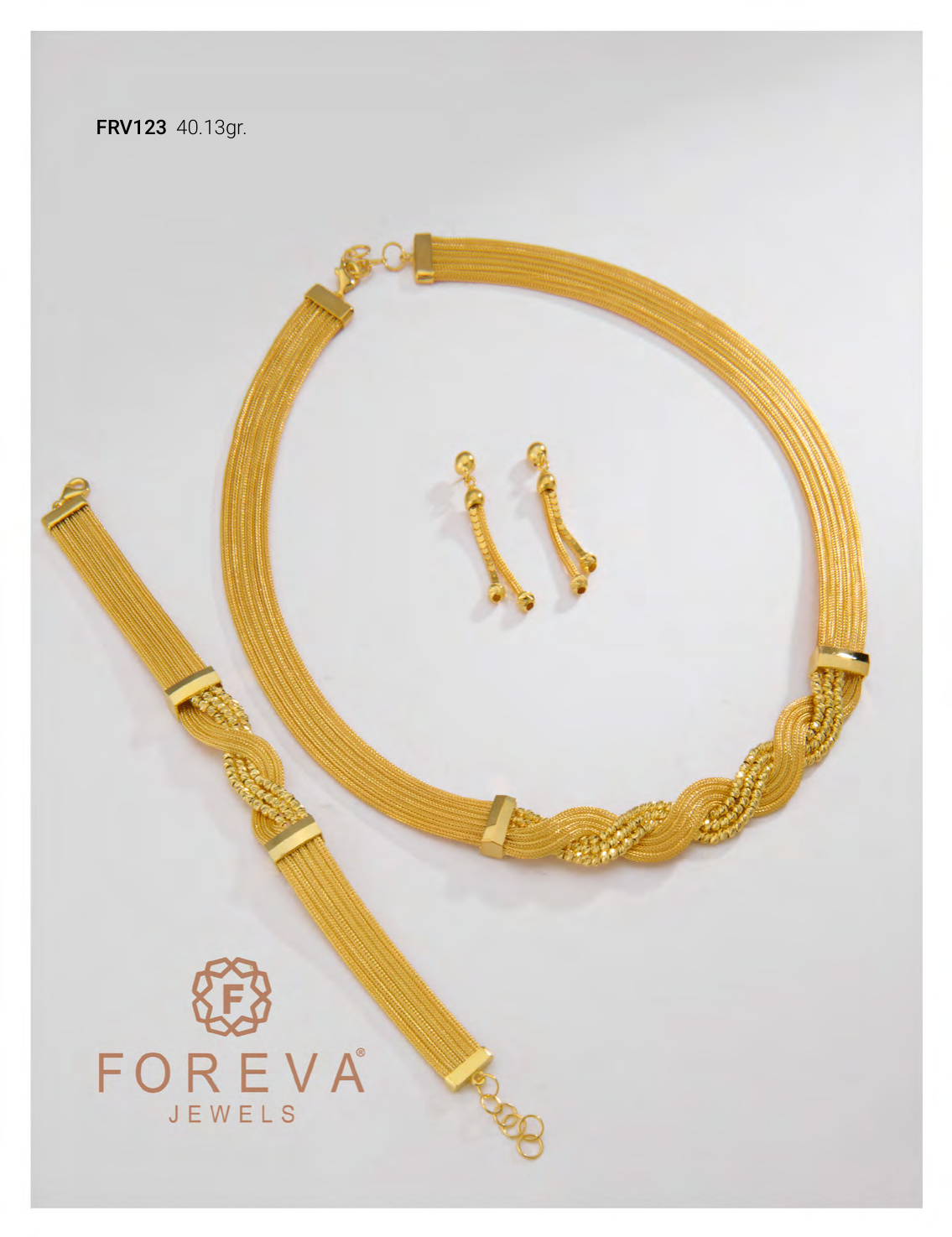 14 ayar altın kalze set, 40.13 gr. Kolye, bileklik ve küpe içerir. Ürün kodu: FRV123.