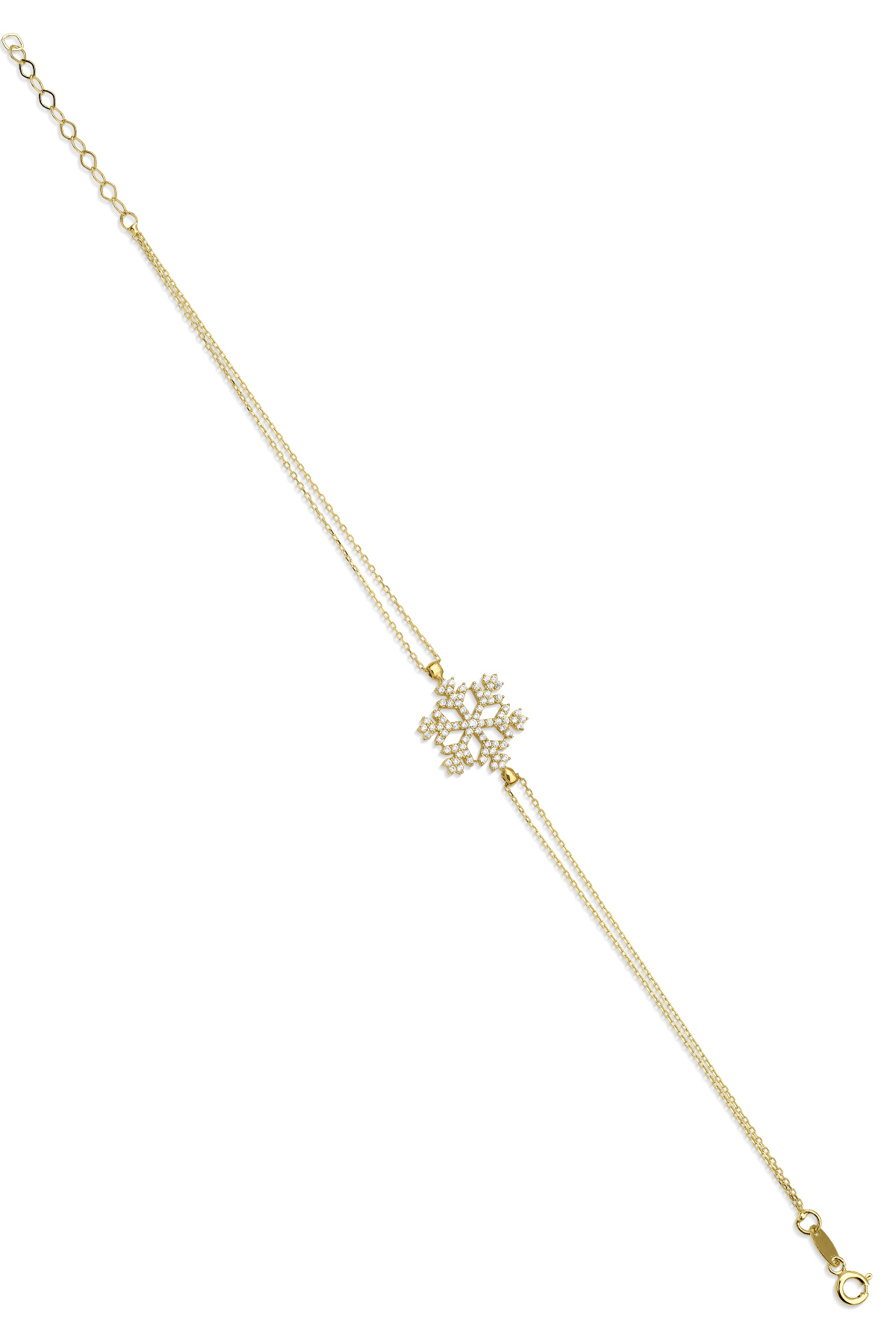 14 ayar altından üretilen Kar Tanesi Bileklik, yaklaşık 2,25 gram ağırlığa ve 18,5 cm + 3 cm uzunluğa sahiptir. Kar tanesi figürlü bu zarif ürün, 1 yıl garantilidir.