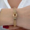 Minimalist tasarımıyla hem tek başına hem de diğer bilekliklerle kombinlenmeye uygundur. Fiyonk Kuyumculuk’un ince işçiliğiyle hazırlanan bu model, estetik ve dayanıklılığı bir araya getirir.