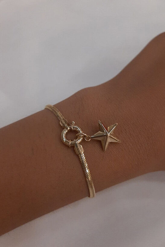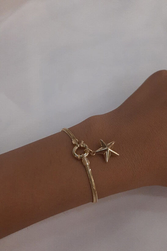 14 ayar altından İkra Kuyumculuk kalitesi ve işçiliği ile üretilen Köşeli Yıldız Detaylı Balıksırtı Bileklik, parlak balıksırtı (herringbone) zincirini, modern köşeli yıldız figürüyle birleştirerek zarif ve ışıltılı bir şıklık sunar. Bilekliğin genişliği 2,45 mm ve toplam uzunluğu 18 cm‘dir. Yaklaşık 3,42 gram ağırlığıyla günlük kullanıma uygun, hafif ve dikkat çekici bir parçadır. Belirtilen ağırlıkta (+/-) %10 değişiklik gösterebilir.