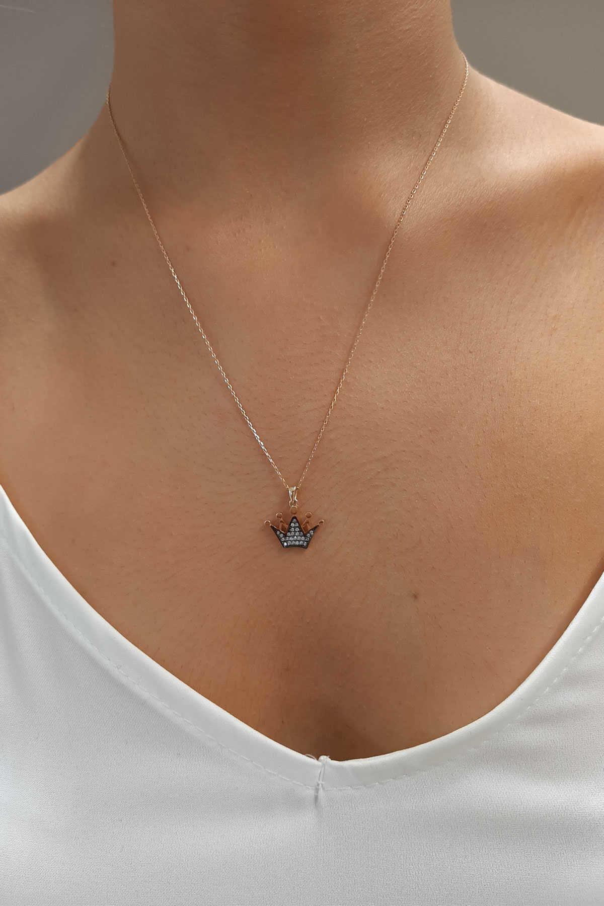 14 Ayar Altın Kraliçe Taçlı Kolye