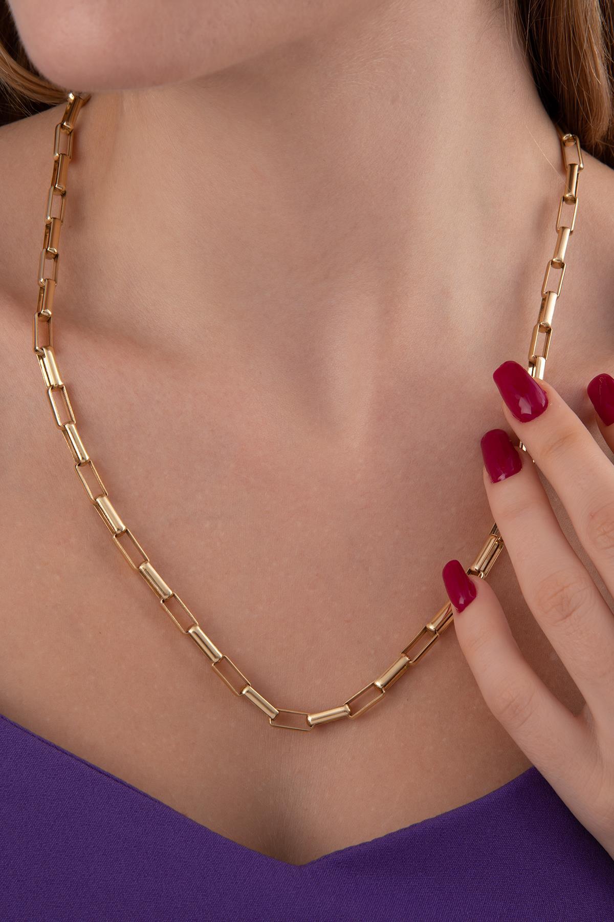 14 ayar altından üretilen kalın Laura Zincir Kolye, yaklaşık 14,96 gram ağırlığında, 55 cm uzunluğunda ve 5,00 mm genişliğindedir. Bu gösterişli zincir kolye, 1 yıl garantilidir.