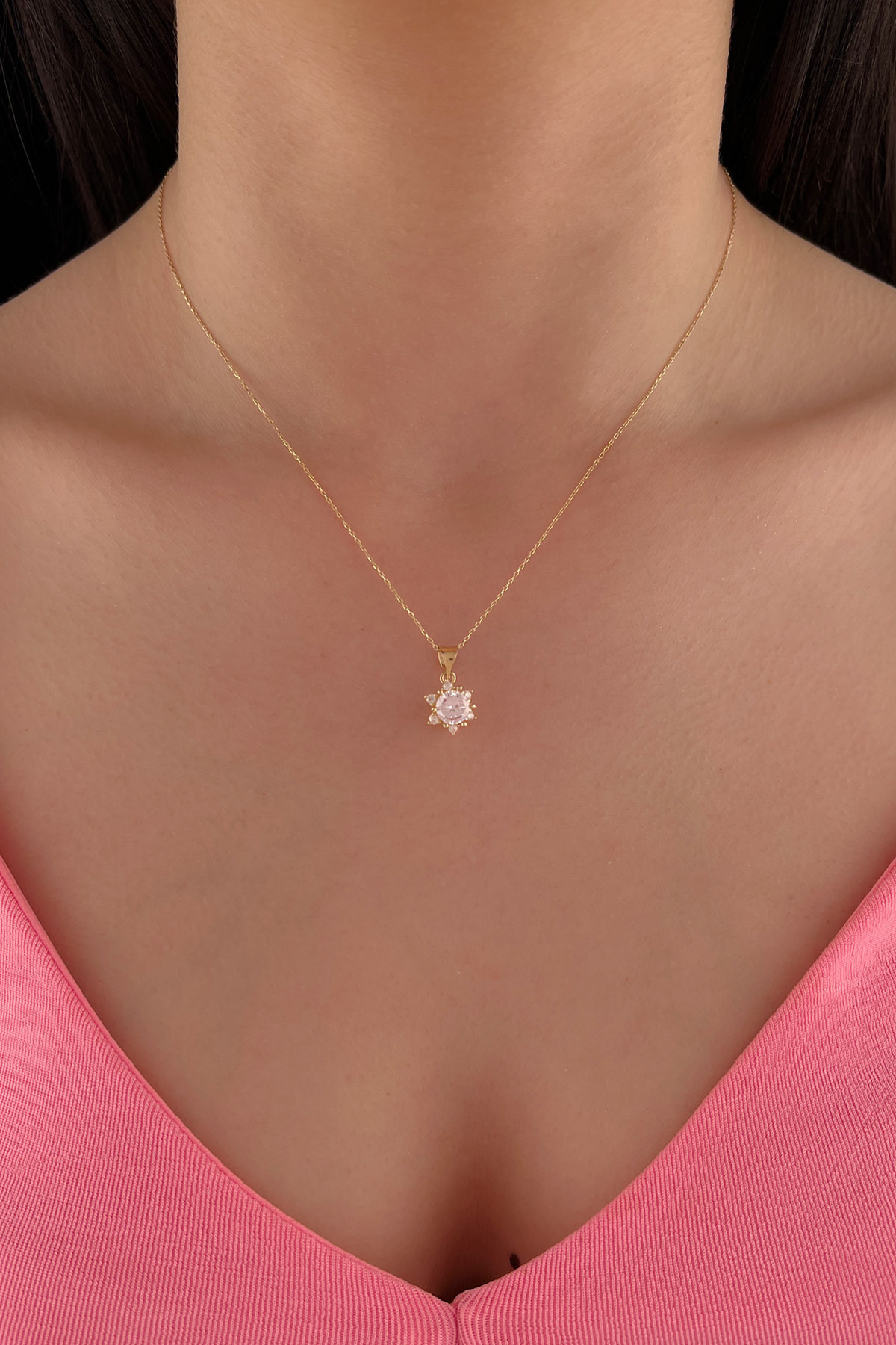 14 ayar altından üretilen Lotus Kolye, 42 cm uzunluğunda ve 9,65 mm genişliğinde uca sahiptir. Yaklaşık 2,85 gram ağırlığındaki saflığı simgeleyen bu kolye, 1 yıl garantilidir.