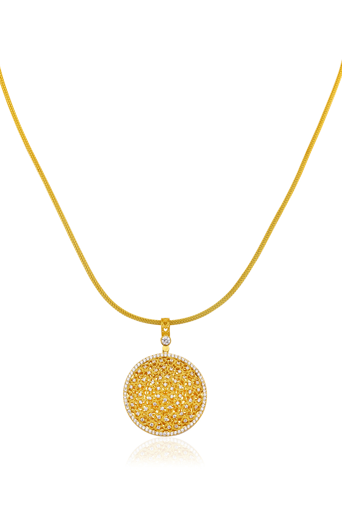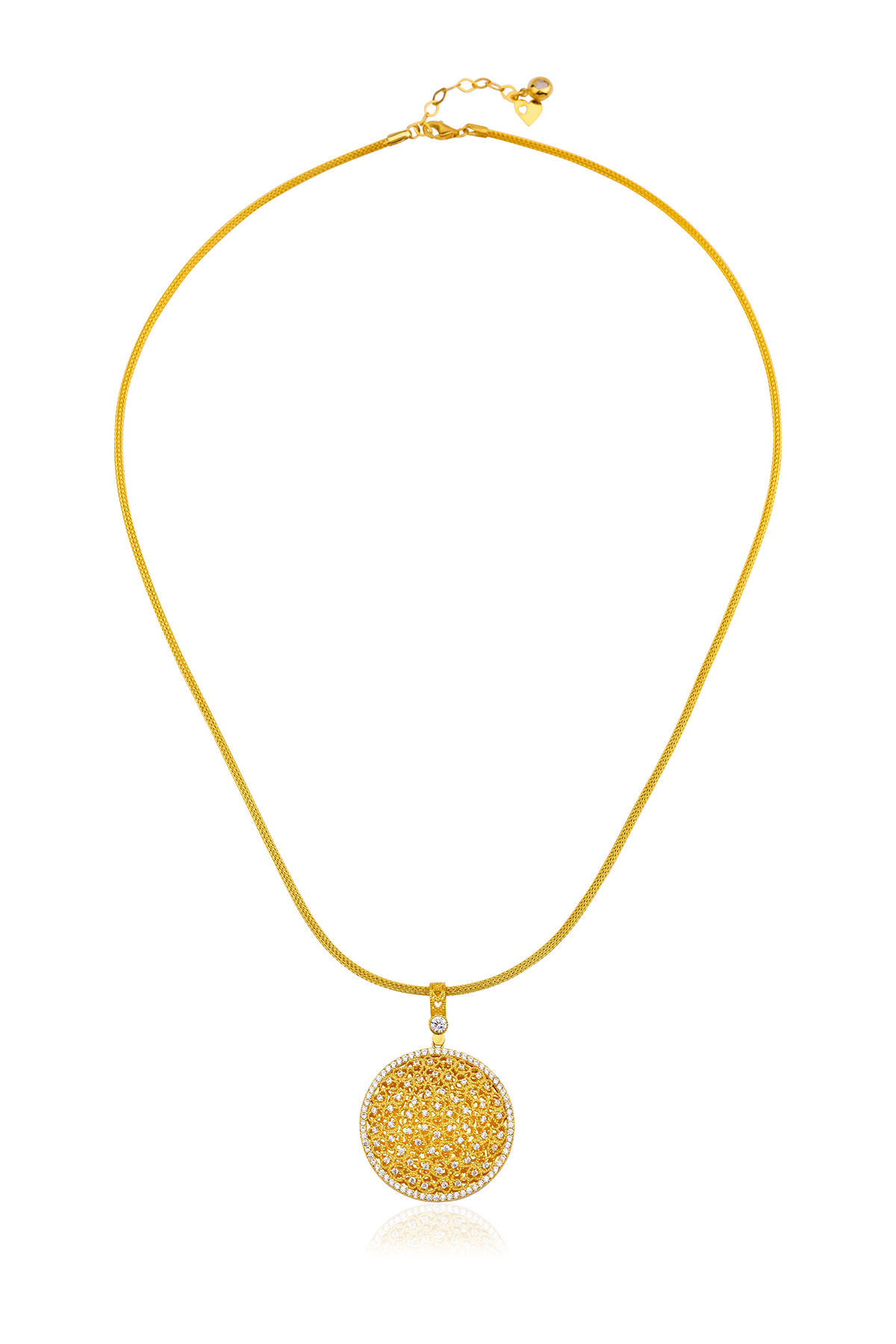 Madalyon kolye, geniş obje detayı ile öne çıkan klasik bir tasarımdır.