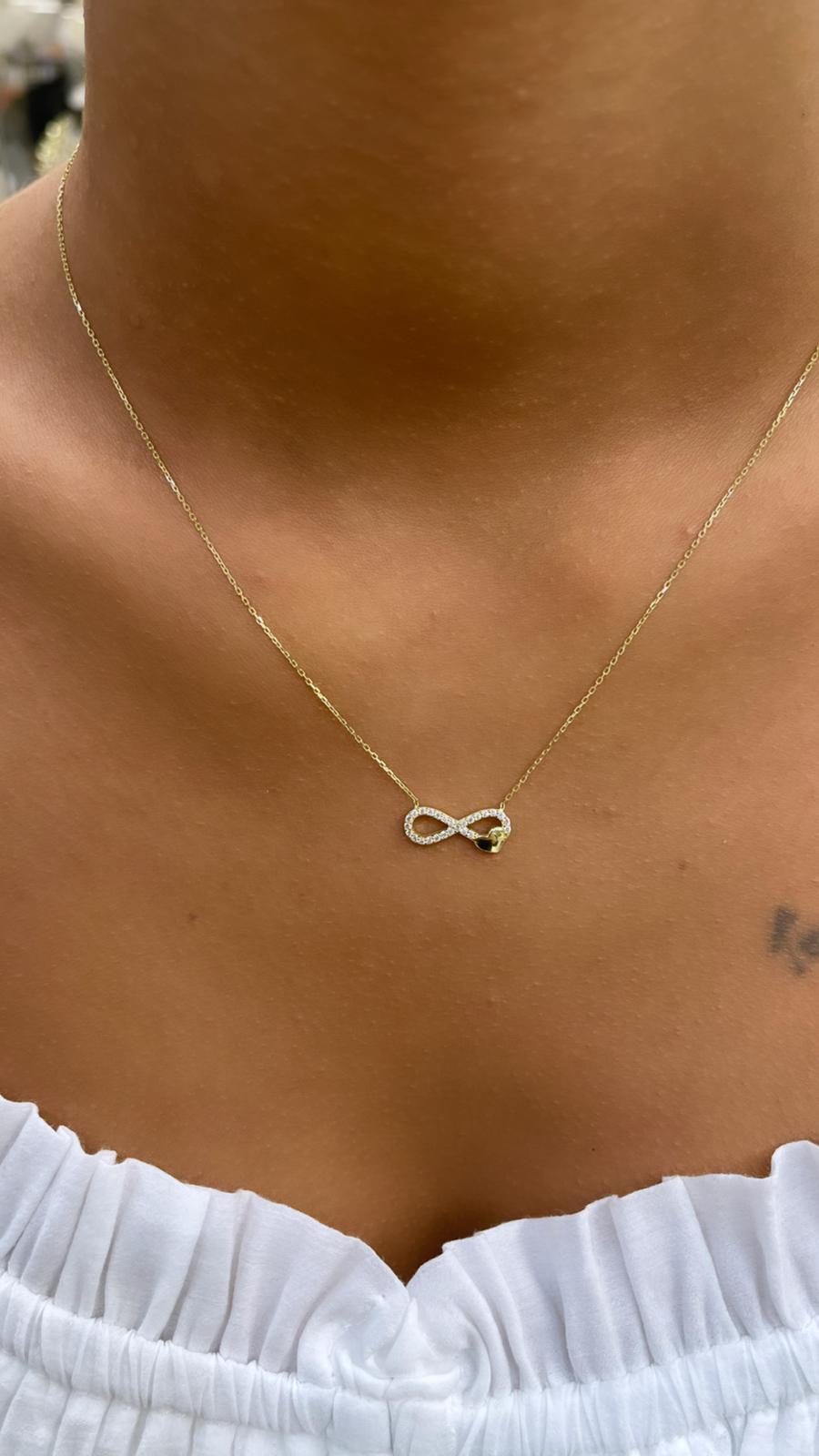 14 Ayar Altın Mini Kalpli Sonsuzluk Kolyesi