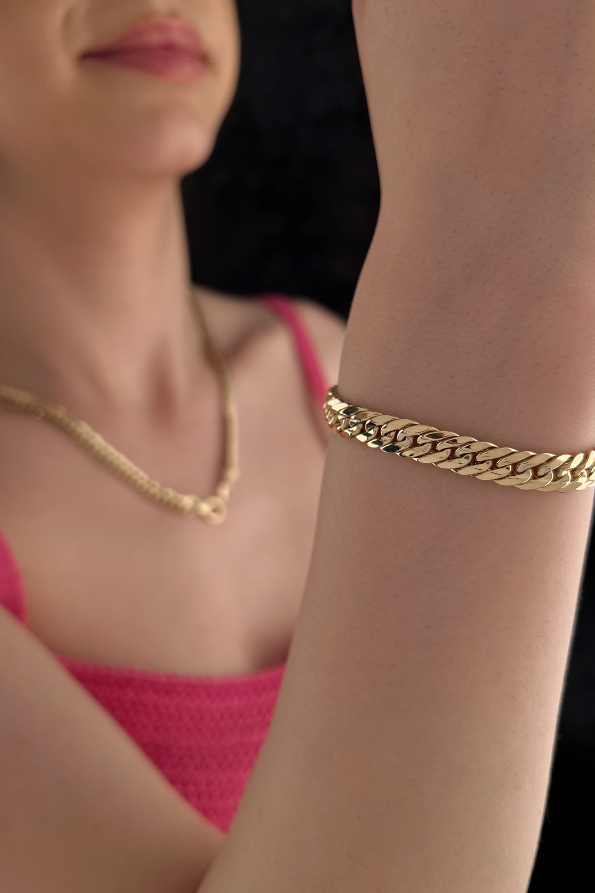 14 ayar altından üretilen Ortası Şerit Detaylı Örme Gurmet Set (SET4015), kolye (16,32 gr / 50 cm) ve bilekliği (7,30 gr / 19,5 cm) içerir. Toplam 23,62 gram ağırlığa sahip bu gösterişli set, 1 yıl garantili ve ömür boyu bakım hizmeti kapsamındadır.