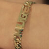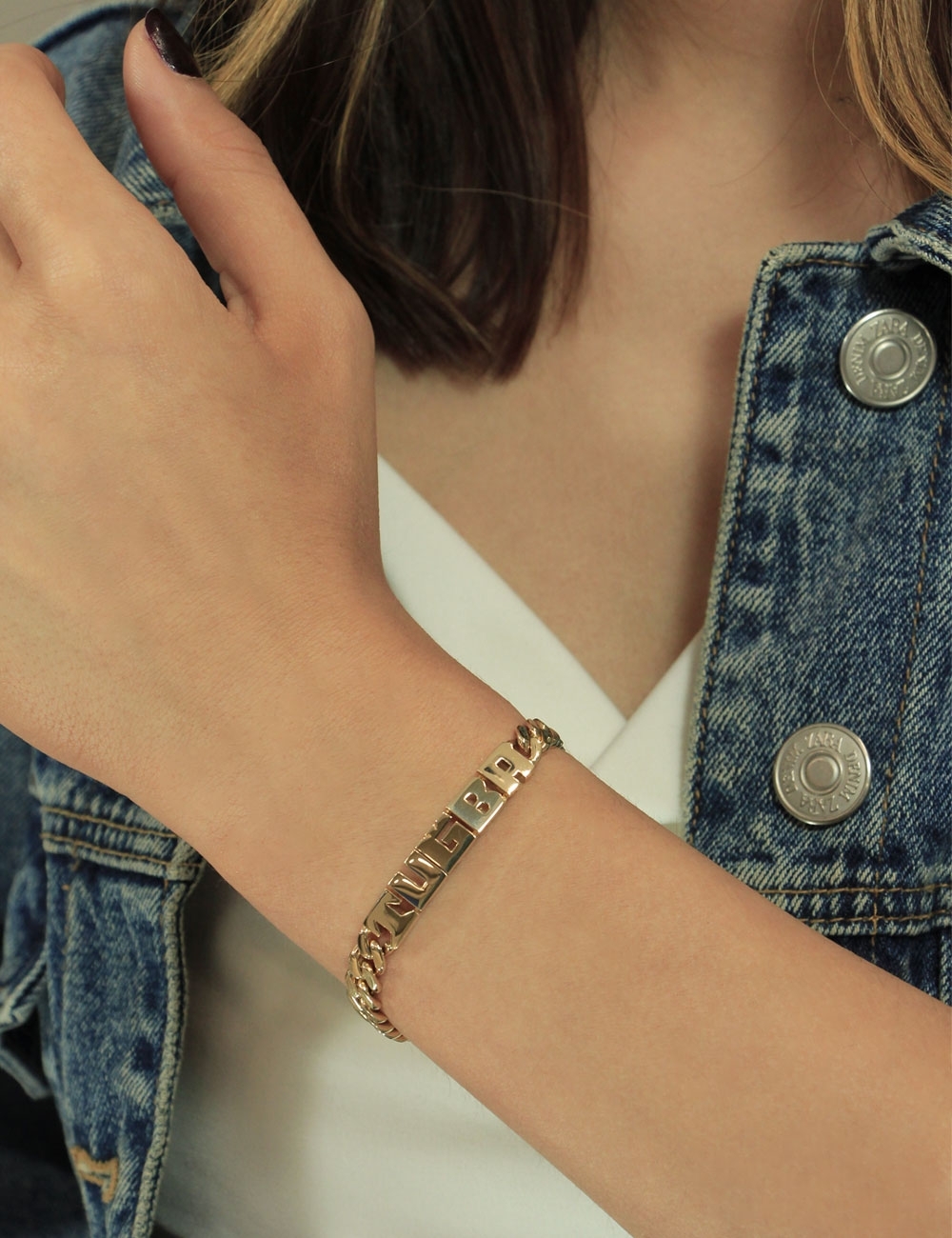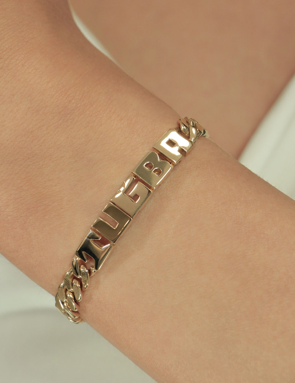 14 ayar altından İkra Kuyumculuk kalitesi ve işçiliği ile üretilen Oynak Harfli İsimli Künye Bileklik, üzerine kişiselleştirilmiş isim veya kelimelerin yazıldığı, harflerin bilekliğin üzerinde zarifçe oynayabildiği (hareketli) modern bir tasarıma sahiptir. Bileklik, 18,5 cm uzunluğunda ve 6,80 mm genişliğindedir. Yaklaşık 25,79 gram ağırlığıyla tok, göz alıcı ve yüksek işçilikli bir parçadır. Belirtilen ağırlıkta (+/-) %10 değişiklik gösterebilir.