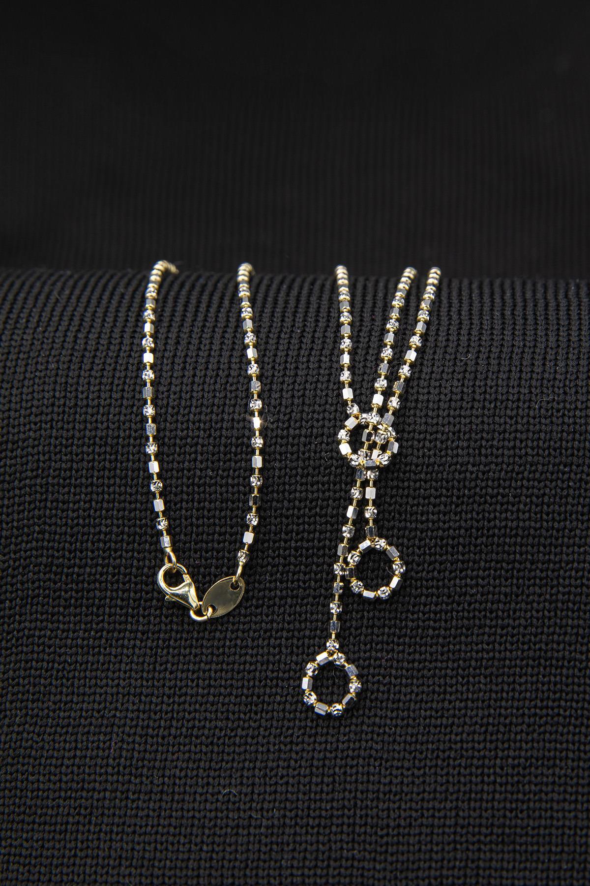 14 ayar altından İkra Kuyumculuk kalitesi ve işçiliği ile üretilen Özel Tasarım Stella Sallantılı Kolye, modern ve dikkat çekici bir tasarıma sahiptir. Bu kolye, yıldızları simgeleyen özel bir tasarıma (Stella figürü) sahip olup, sallantılı yapısıyla dinamik bir görünüm sunar. Ürünün ucu taşsız ve içi doludur, bu da ona tok ve kaliteli bir his verir. Zincir uzunluğu 50 cm ve genişliği 1,50 mm‘dir. Obje genişliği ise 7,30 mm‘dir. Ürünün yaklaşık ağırlığı 6,96 gramdır ve günlük kullanıma uygundur.