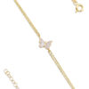 14 ayar altından İkra Kuyumculuk kalitesi ve işçiliği ile üretilen Renkli Üç Kelebek Bileklik, zarif bir zincir üzerine yerleştirilmiş, kanatları canlı renkli mine veya özel renklendirme teknikleriyle işlenmiş üç adet Kelebek figürüyle hayat bulan, neşeli ve modern bir tasarımdır. Bilekliğin toplam uzunluğu 18 cm + 3 cm uzatma halkası sayesinde bileğe göre kolayca ayarlanabilir. Yaklaşık 1,85 gram ağırlığıyla hafif, zarif ve günlük kullanıma uygun bir parçadır.